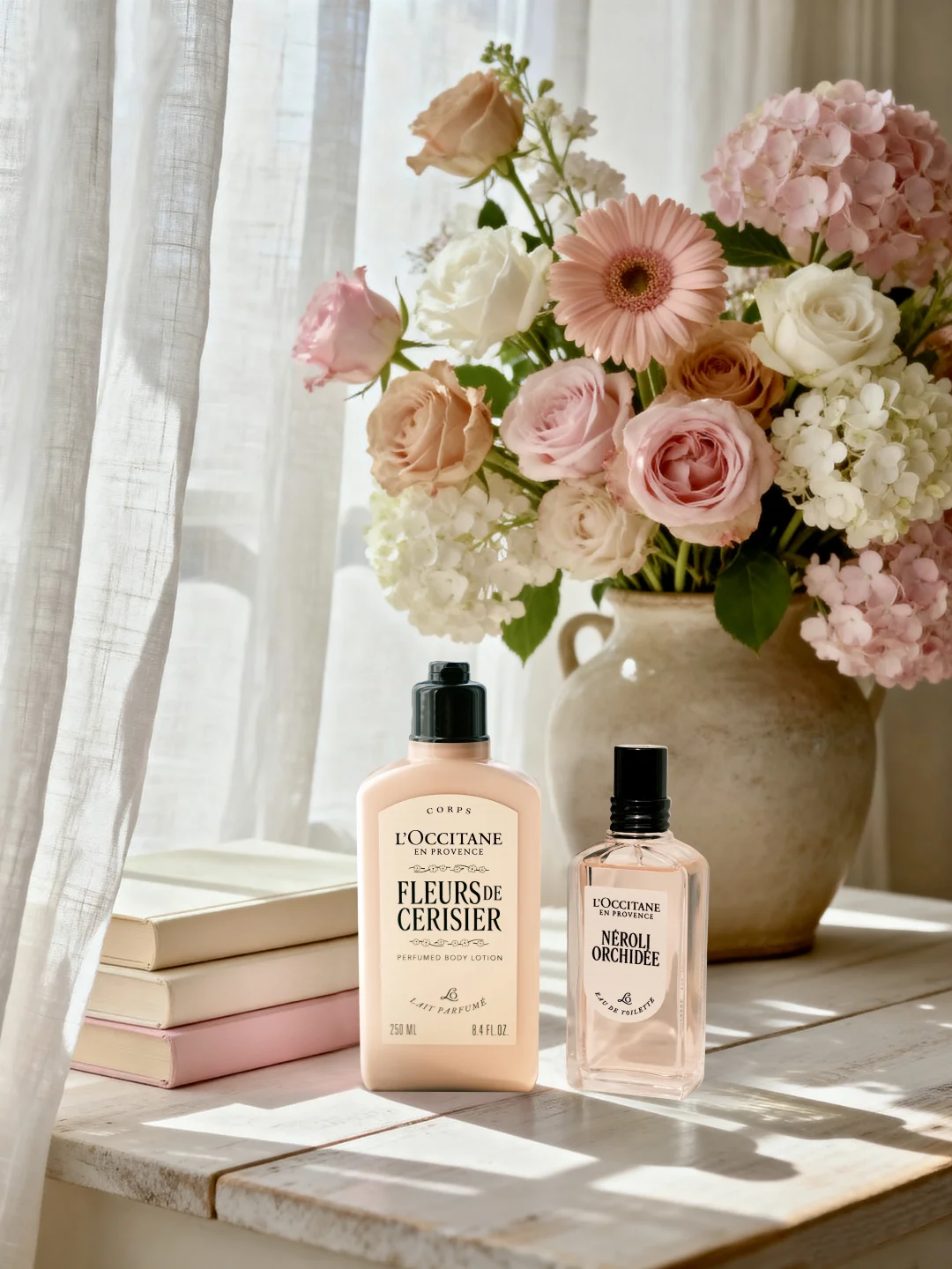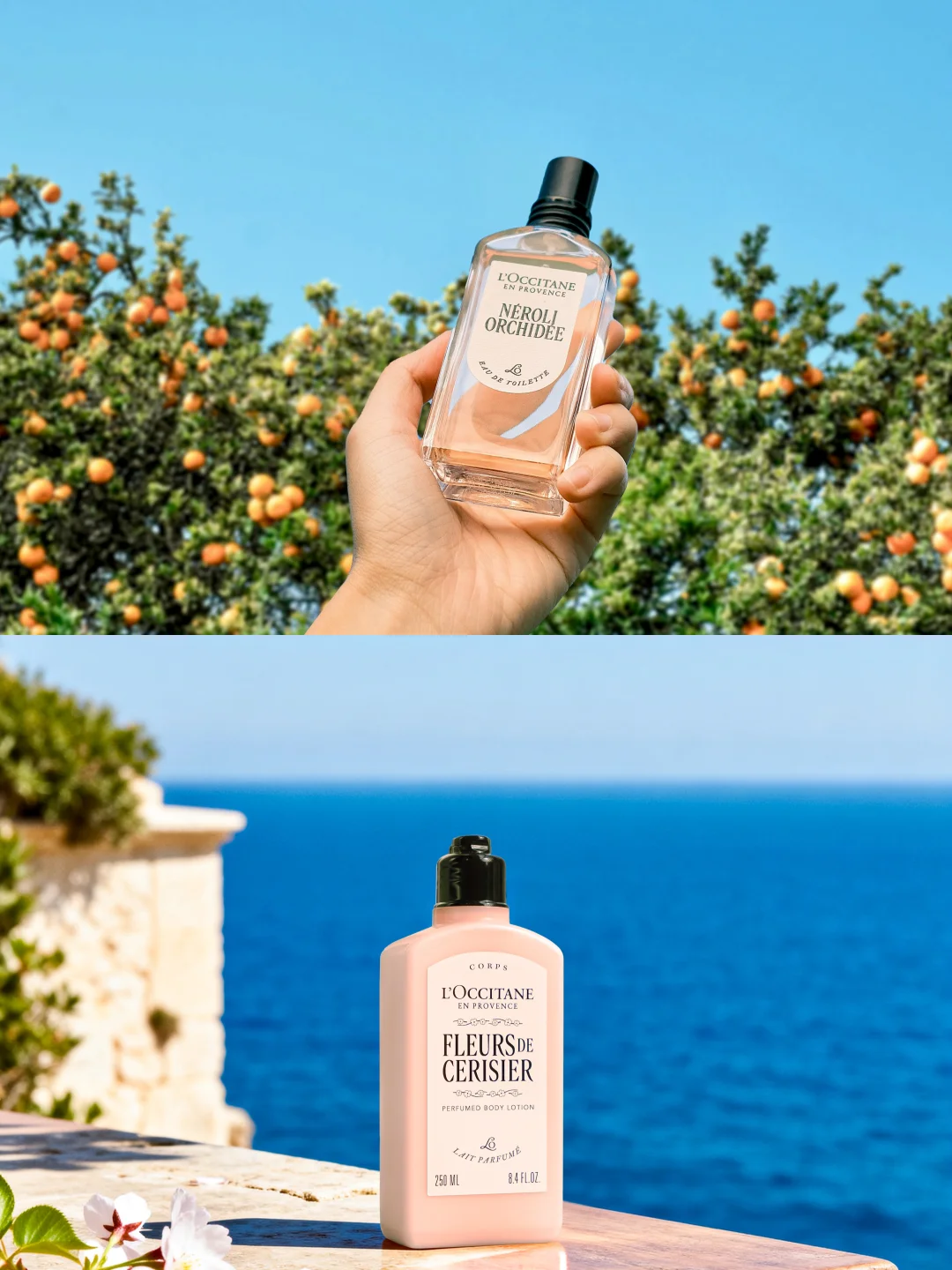 海面泛着浅浅的金光,浪花轻拍着石岸,橙花与樱花在微风里相遇,两种香气在此刻交织成一抹充满生命力的风景 在这样的海边早晨,开启欧舒丹南法艺境香氛礼盒,让香气在清晨的空气中层层展开 樱花身体乳,轻盈丝滑的质地融于肌肤;再叠加橙花淡香氛,花与果的清甜在微风中交织,轻盈而明亮 香气从樱花的甜蜜到橙花的清爽,再到微酸的果香,层层相融,如光线在海面流转。既有花瓣的温柔,又带着阳光的澄净感。此刻的清晨,仿佛南法海岸的风吹过身旁,层叠的香气留在肌肤之上,成为专属与清晨的明亮记忆