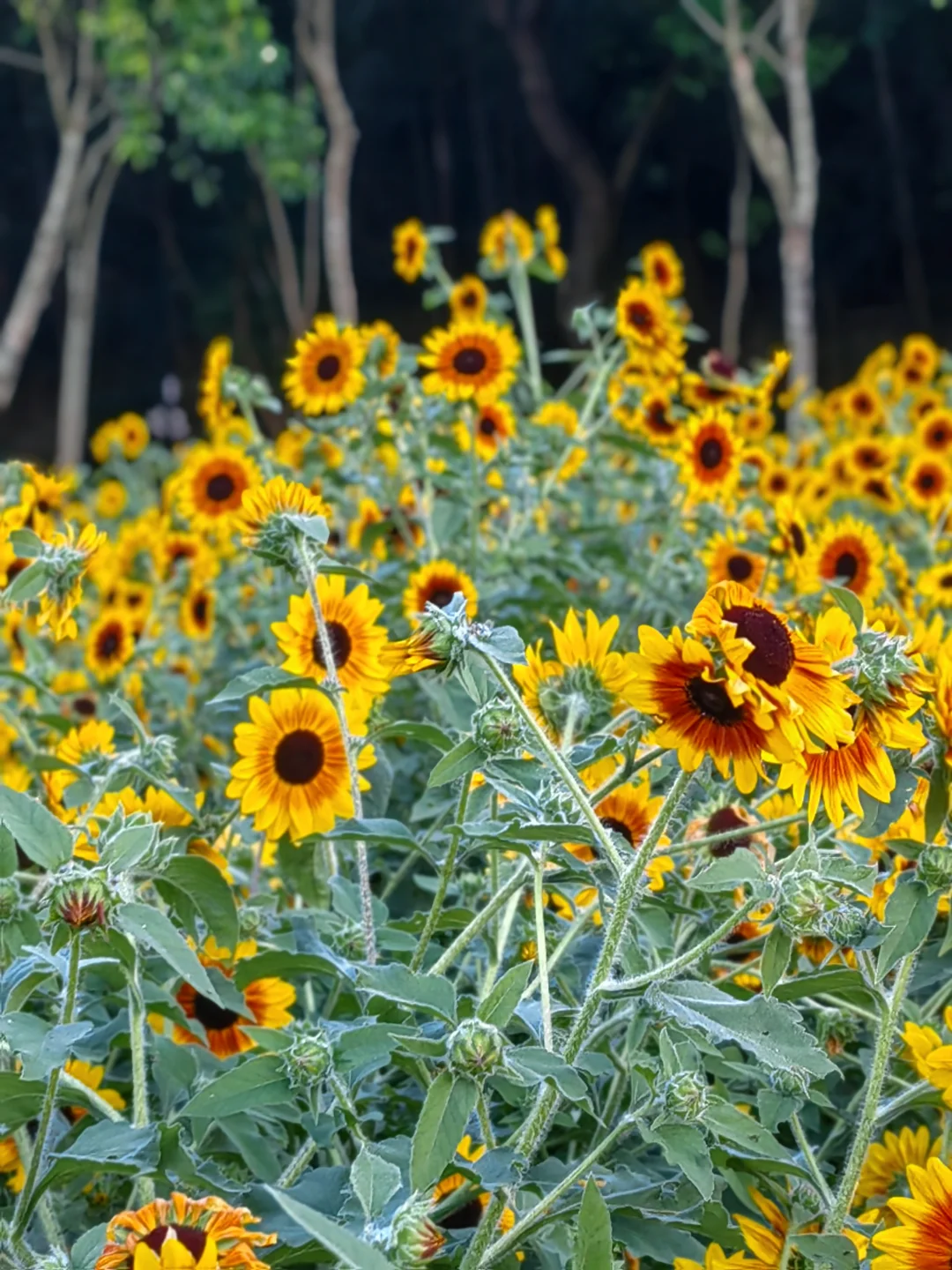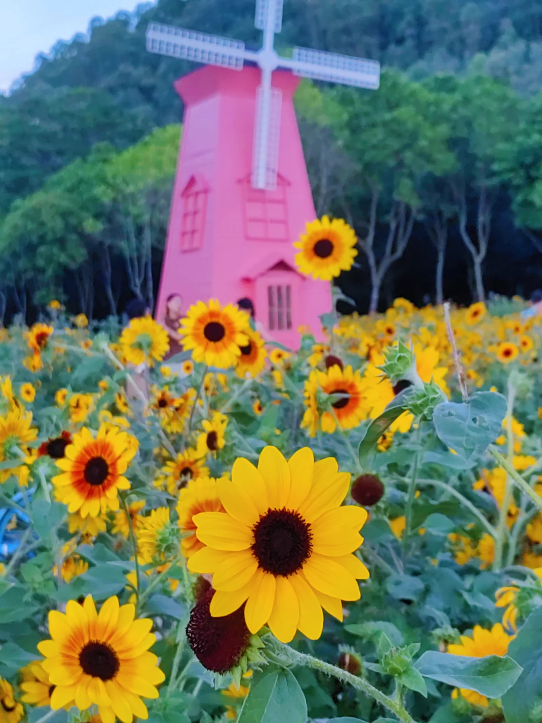 顺德顺峰山向日葵花海真的美到窒息 整整一大片区域,开成金色海洋了🌻 从公园入口往花海方向走,一片亮堂堂的黄 像把整个秋天的阳光都装在了这里 花杆比人还高,站花丛里很容易拍出沉浸式大片 📷Tips ⏰最佳拍摄时间是上午7-9点,徬晚5-6点 阳光柔和不刺眼,拍出来皮肤显得巨好 🥼穿浅色系衣服!白色、浅蓝和向日葵超搭 周末别宅家啦 来顺峰山和秋天的向日葵约会吧