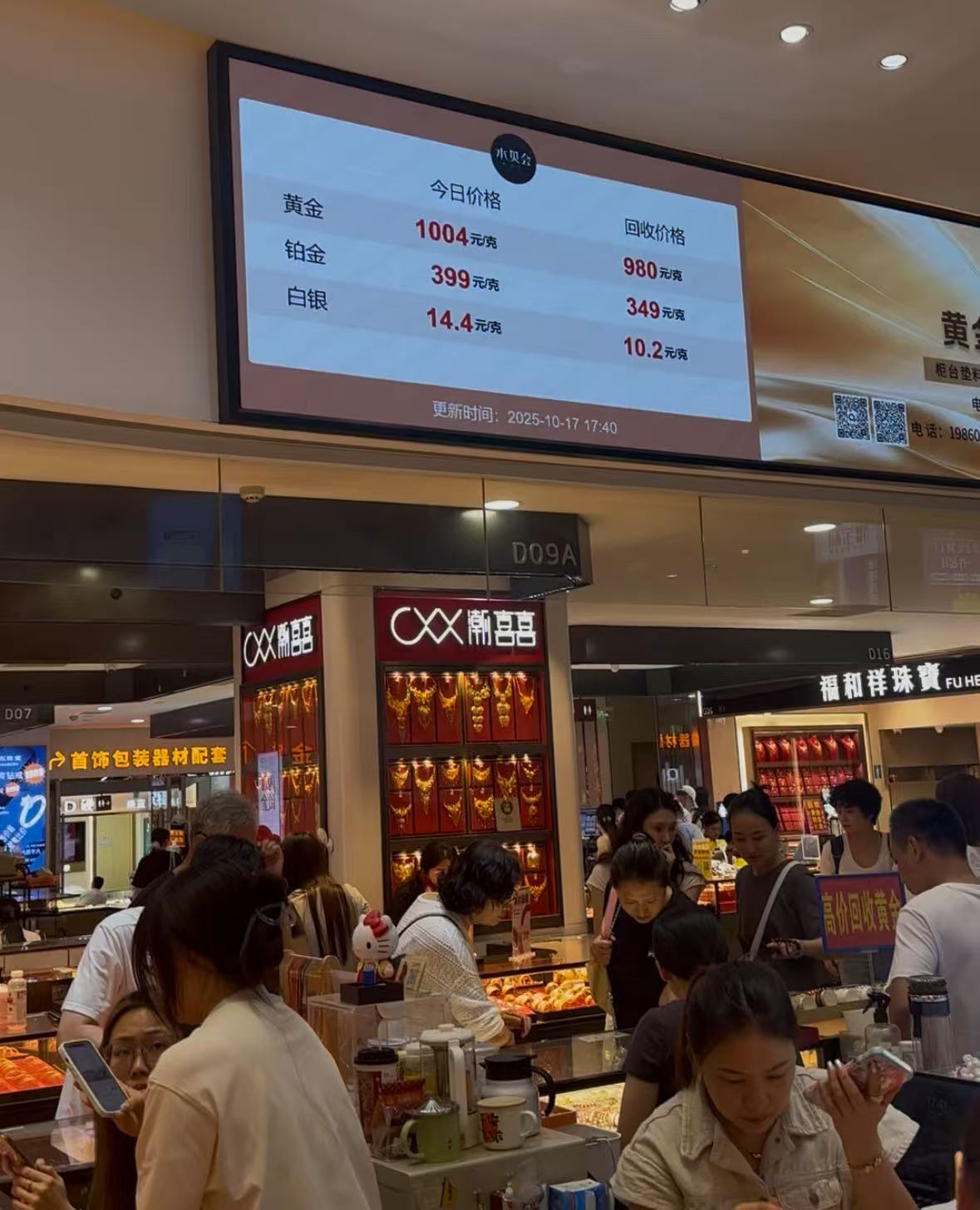 尽管金价屡破新高,21世纪经济报道记者线下走访看到,水贝黄金专业市场内依然有不少购买金饰、投资金条的消费者。