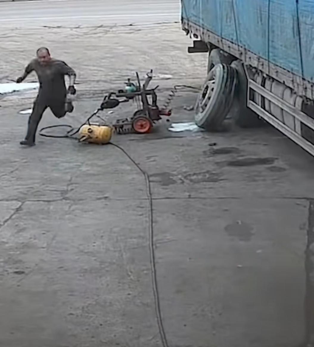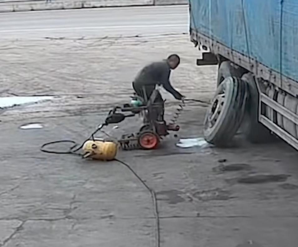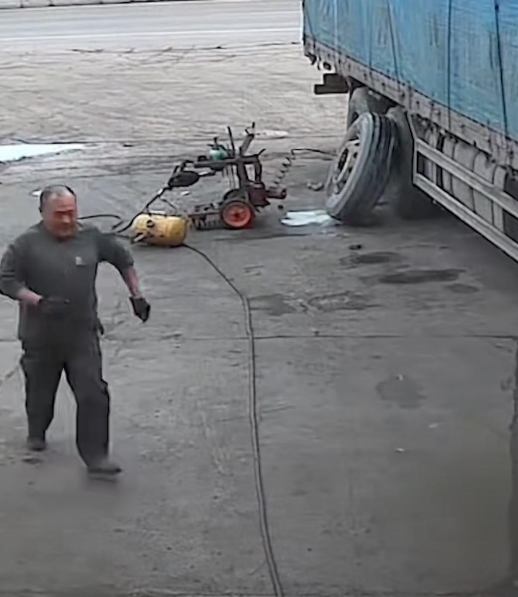 还得是有经验的老师傅,及时跑开了!躲过一劫。 给轮胎充气是个危险的活!近日,安阳的宋师傅再给一辆大车轮胎打气时,突然听到轮胎里面的钢丝发出砰砰的断裂声,他意识到不对,急忙跑开了! 不明就里的车主,从车后绕过来观看情况,没想到,一声巨响,轮胎炸开了! 此时,宋师傅已经把气泵关闭了! 还好没出现事故,经验很重要。