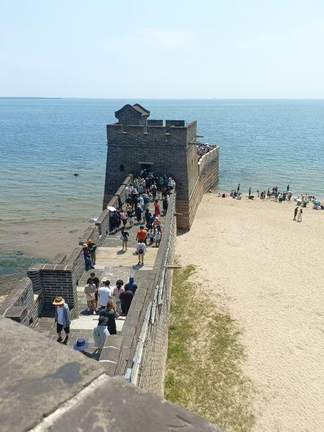 俗话说得好,沙滩上不能建高楼,但是,到了山海关老龙头,看到海上长城,或许会改变你的看法。 古城墙不但建在沙滩上,古城楼也可以!不得不佩服古代能工巧匠的智慧。 再看看现在的美墨边境(图五),只能树立简单的格栅墙! 差距不言而喻。 老龙头海上长城始建于洪武十四年,也就是公元1381年,距今644年了。由大将军徐达主持修建,后来戚继光等将领进行了修缮加固。