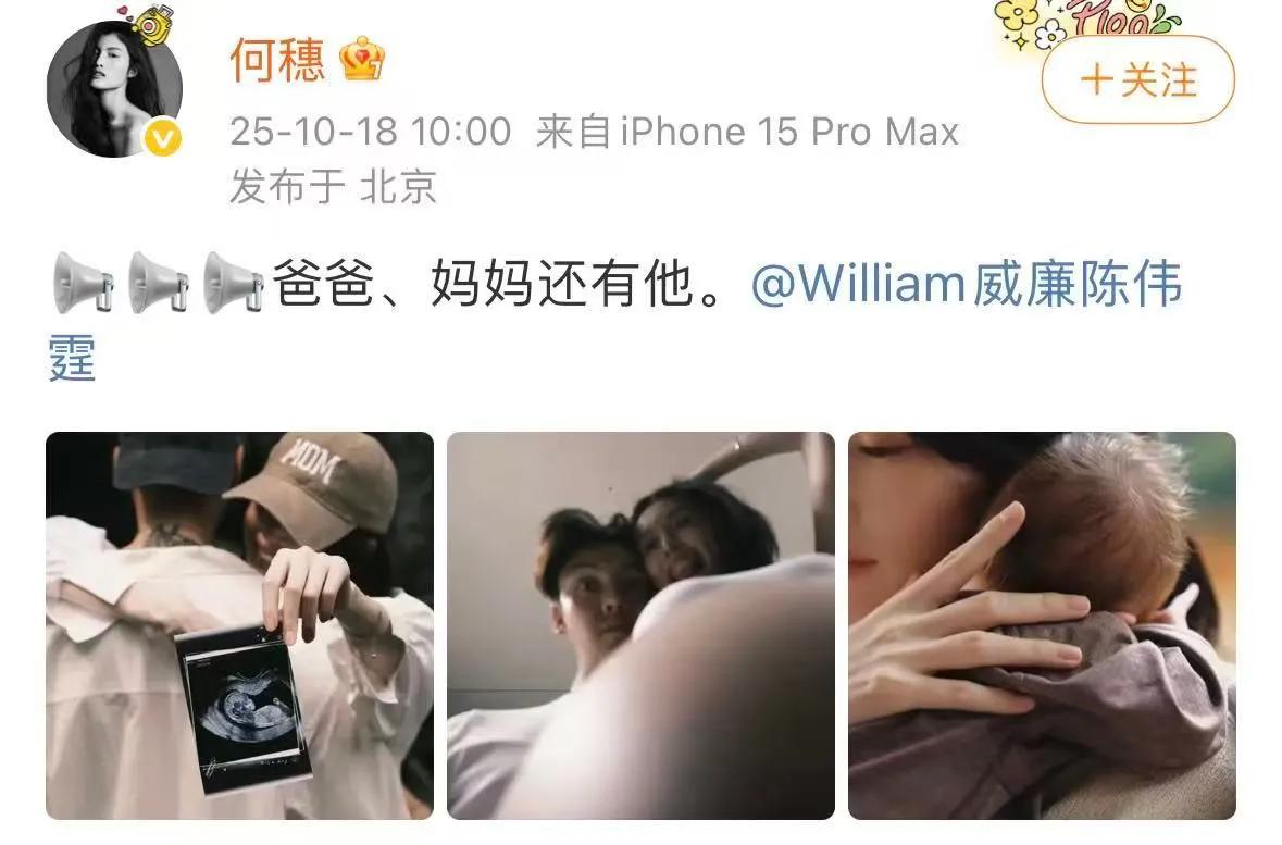 娱乐圈神仙眷侣加一对!陈伟霆何穗官宣结婚生子,双喜临门。 帅哥美女爱情事业双丰收
