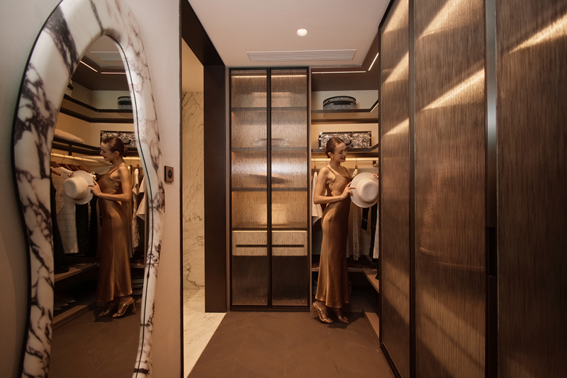 此次“天际云邸”的艺术样板空间由知名设计师梁志天主持设计硬装、CCD郑中设计室内软装,以国际化的美学语言,将北外滩特有的码头文化与海派艺术元素融入居住场景,营造出兼具开阔尺度与精致细节的生活空间。