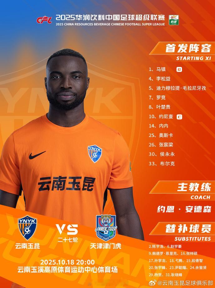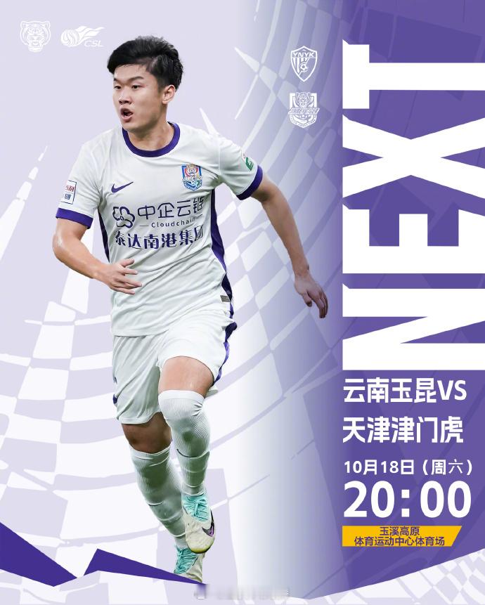 云南玉昆vs天津津门虎 19:45,搭档指导解说2025赛季中超联赛第27轮:云