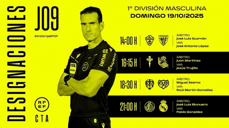 直播吧10月19日讯西班牙足协官方公布了西甲第9轮部分比赛场次的裁判安排,穆努埃拉执法皇马客战赫塔费。