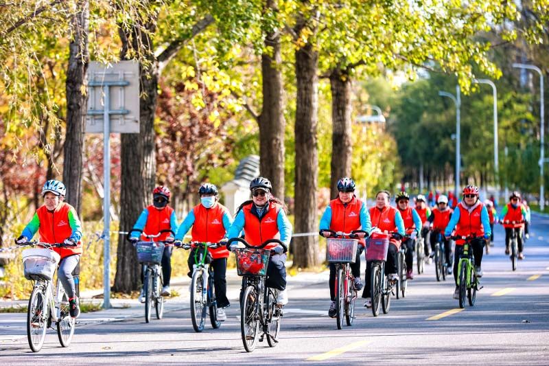 市民参与休闲骑游,体验“人在画中骑”的惬意。