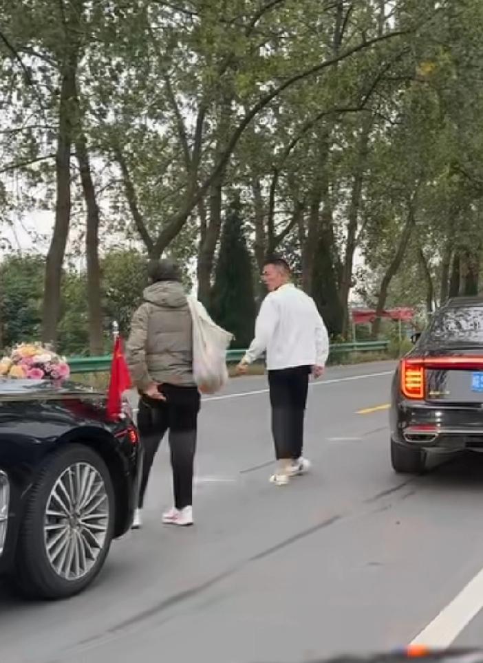 省道大车多太危险,车辆正在行驶突然跑出来拦住了,让他到路边不愿意,为了安全起见制止一下,最后给了两个红包 这种婚俗要整顿下,讨喜本意是给主家活跃下气氛自己也沾沾喜气,而不是当一种职业去敛财,给主家带来负担
