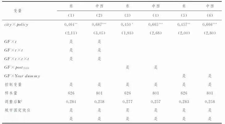 绿色金融改革创新试验区是国务院对中国绿色金融发展制定的“自上而下”的顶层设计。鉴于东中西部地区在自然资源禀赋及经济发展方面具有较大差异,那么不同区位的试验区在推进绿色金融改革、推动地区绿色发展的过程中,对鸟类多样性的影响是否会存在显著差异?对这一问题,文章在控制了试验区设立非随机性的问题后,如表5所示,东部和中西部地区的回归结果均显著为正,这也证实了本文的推断,即绿色金融改革创新试验区在建设过程中,在向“绿”而行的建设道路上稳步推进,并没有因经济发展水平、地理区位的差异,降低推动绿色金融发展的标准。