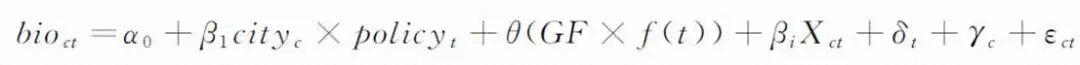 本文以绿色金融改革创新试验区作为政策冲击,考察绿色金融对生物多样性的影响,回归模型如下: