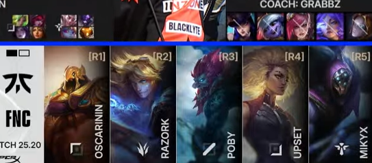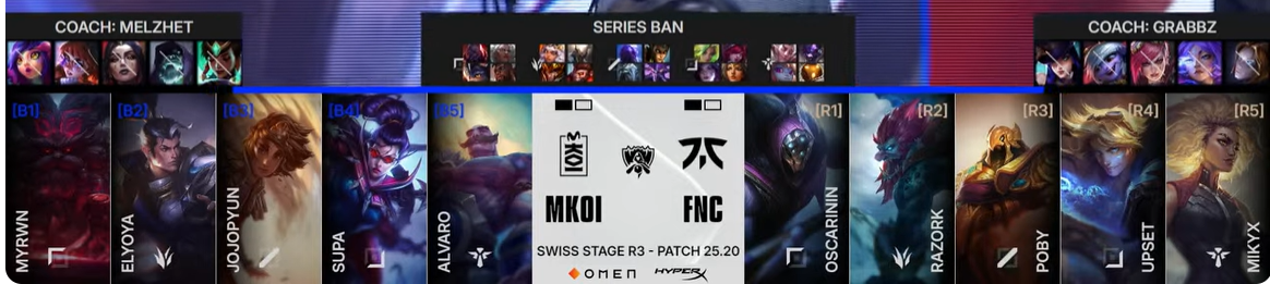KOI对战FNC第三局BP:KOI首选岩雀,末位次选选出VN