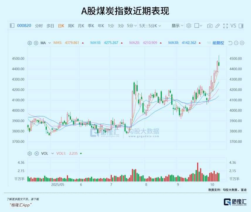 这主要是上述热门板块在三季度期间积累了巨大涨幅,然后在两国关税问题再起波澜的担忧情绪下,资金采取了高低切换操作进行避险,而煤炭板块由于在前期行情中一直弱势波动,逐渐跌出性价比,就成为了承接避险资金的主要去处;