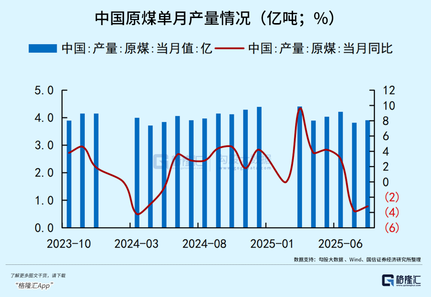 在供应端,2025年1-8月,全国原煤产量累计完成31.7亿吨,同比仅增加2.8%。其中,7月全国原煤产量完成3.8亿吨,环比减量4000万吨(-9.5%),同比减少900万吨(-3.8%);8月份,全国原煤产量完成3.9亿吨,同比减量约600万吨(-3.2%),环比增加900万吨(+2.5%)。