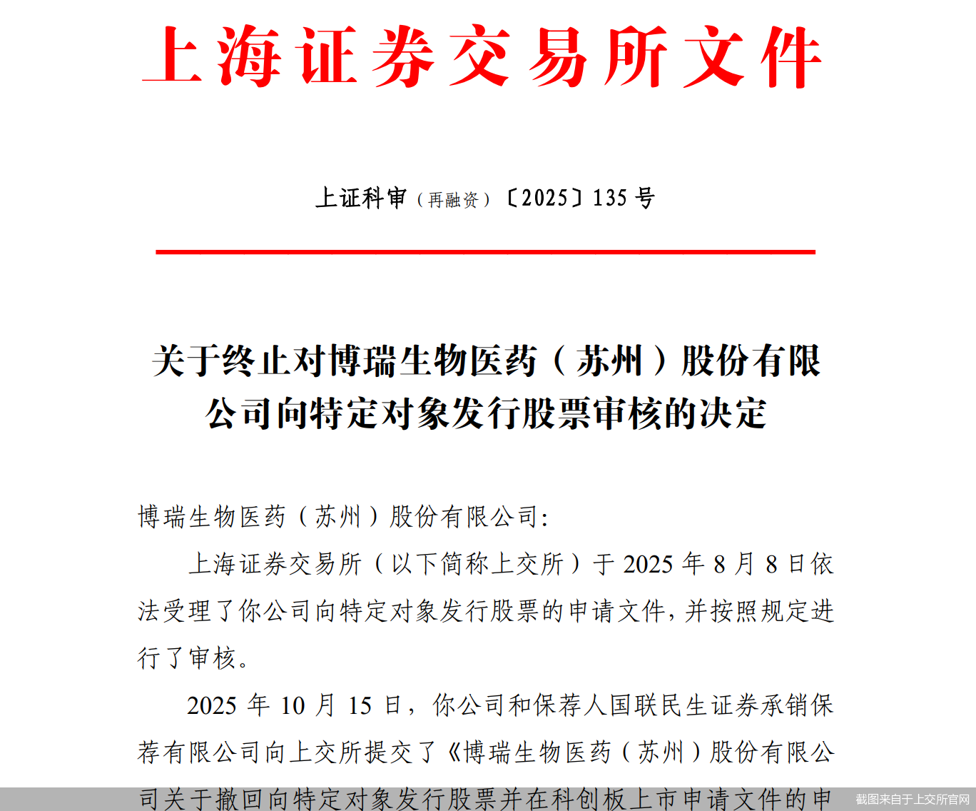 据上交所官网,10月17日,上交所发布终止对博瑞医药向特定对象发行股票审核的决定。据悉,博瑞医药原拟向特定对象发行募集资金总额不超过5亿元(含本数),扣除发行费用后净额拟将全部用于补充流动资金和偿还银行贷款。该事项于2024年5月开始筹划,历经两次修订,于今年8月8日获得上交所受理。