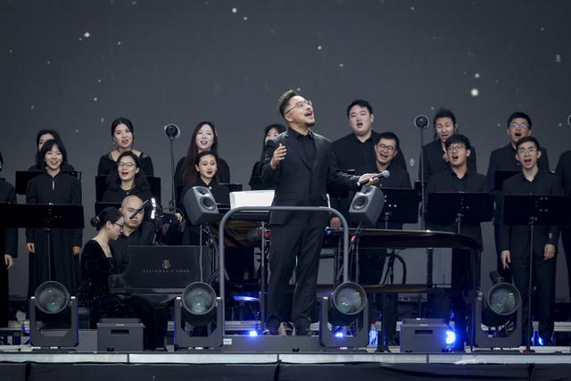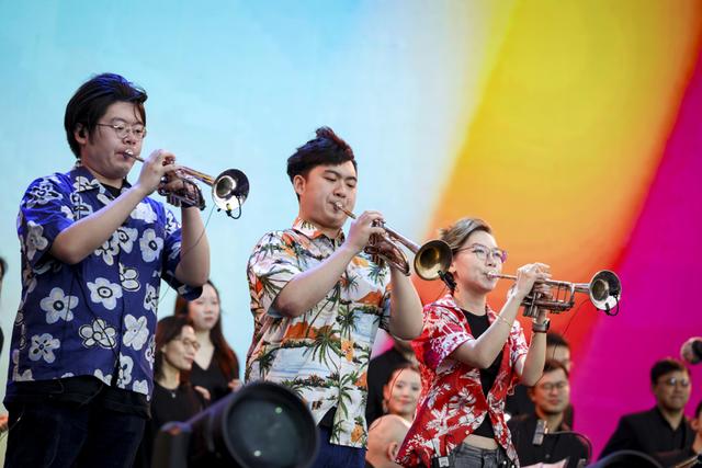 上海彩虹室内合唱团自2010年成立以来,创作多部表达年轻人情感的热门作品。此次音乐节,合唱团以近五十人的全编制阵容登台,艺术总监、指挥金承志携手钢琴伴奏吴经纬,精心编排了近两年巡演中的代表性曲目。《来自外公的一封信》《妈妈,你在看什么?》《老爸的破车》等曲目,以细腻的情感表达和温暖的旋律,勾勒生活里的真挚瞬间。选自合唱剧《罗刹国纪》系列的《乘风破浪》《喜相逢》以及《白马村游记》中的《榕树》在和声编排与艺术表达上大胆探索。《上海的那头》以上海本土生活场景为蓝本传递出对这座城市的深厚情感。压轴曲目《活在爱里面!》唱响时,热闹的行进乐队惊喜登场,打破了舞台与观众的界限,将现场气氛推向高潮。