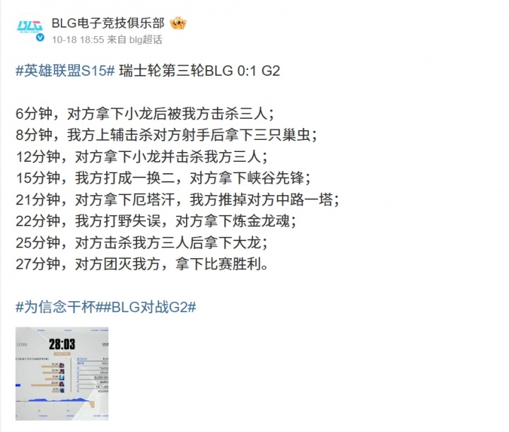 直播吧10月19日讯BLG在瑞士轮吗目前的战绩是1-2,分别败给100T、G2。