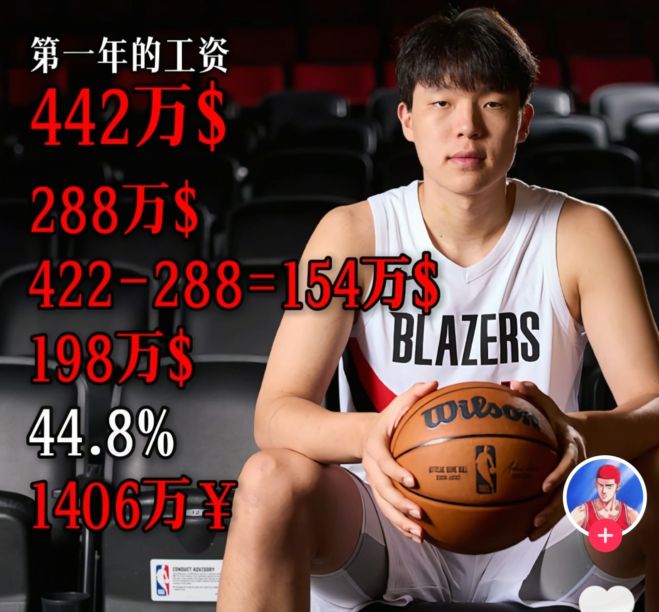 杨瀚森的第一年薪酬是 442 万美金,扣除各种联邦税、周税、NBA 联盟托管基金、医保&养老金、经纪人用金钱、表演税之后,大概到手 154 万美金(如果联盟托管基金返还的话,大概到手 198 万美金)。
