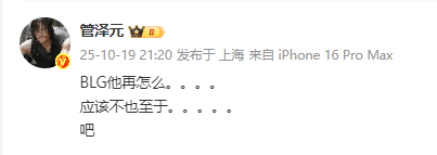 虎扑10月19日讯2025全球总决赛瑞士轮第四轮抽签结果已经出炉,BLG将会对阵到VKS,对此管泽元发文: