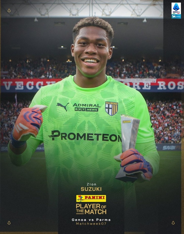 补时扑点,意甲官方:铃木彩艳当选帕尔马0-0热那亚全场最佳