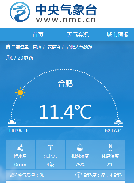 “今天感觉这么冷!”20日早晨,合肥市民聂先生感慨。大皖新闻记者查询数据发现,7点20分,合肥市实时气温11.4℃,但是配上空气相对湿度和北风,显示体感温度只有7℃!截至20日早晨7时,安徽省非高山站点气温最低出现在砀山,为9.7℃,再次创下今年立秋以来新低。全省有47个站点最低气温在12℃以下。