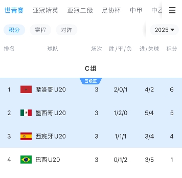 本届世青赛,小组赛阶段摩洛哥2胜1负小组第一晋级,同小组还有墨西哥、西班牙、巴西。