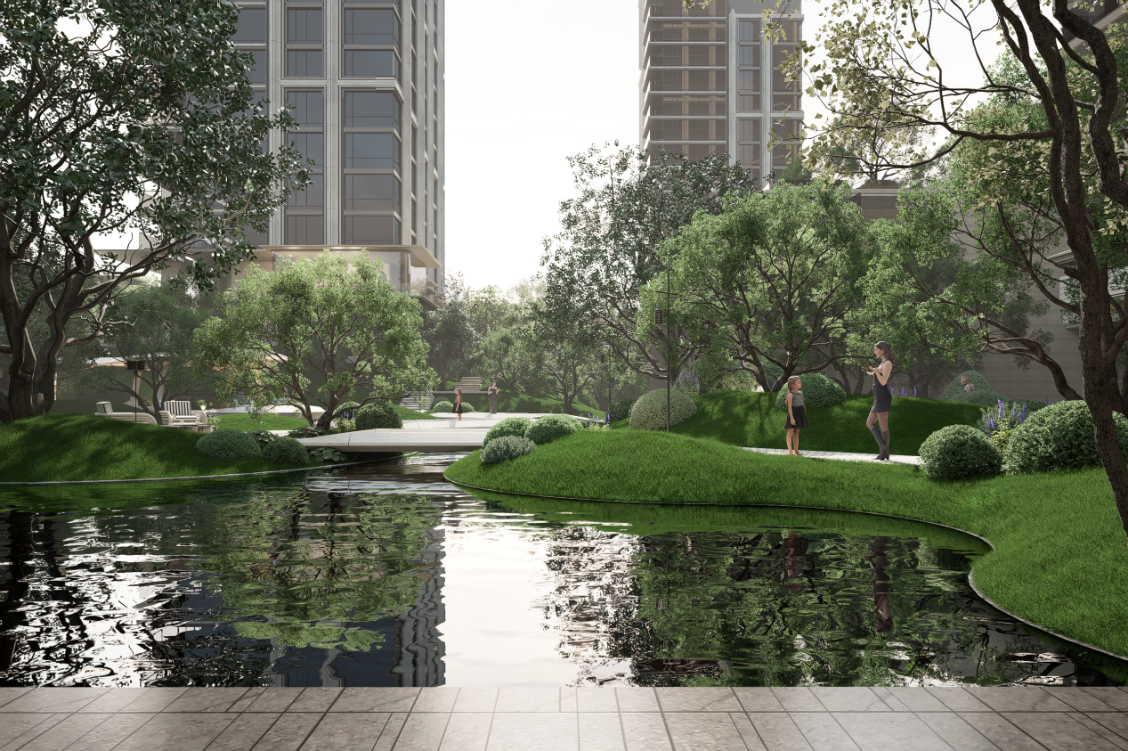 澐启滨江并不是简单的“借景”,而是“融景”。社区围墙被下沉水景和绿化替代,滨江步道直接融入世博文化公园的10公里绿廊,实现“推窗见江、移步入园”。