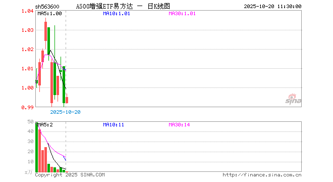 A500增强ETF易方达(563600)业绩比较基准为中证A500指数收益率,管理人为易方达基金管理有限公司,基金经理为黄浩东,成立(2025-09-10)以来回报为-1.47%,近一个月回报为-1.52%。
