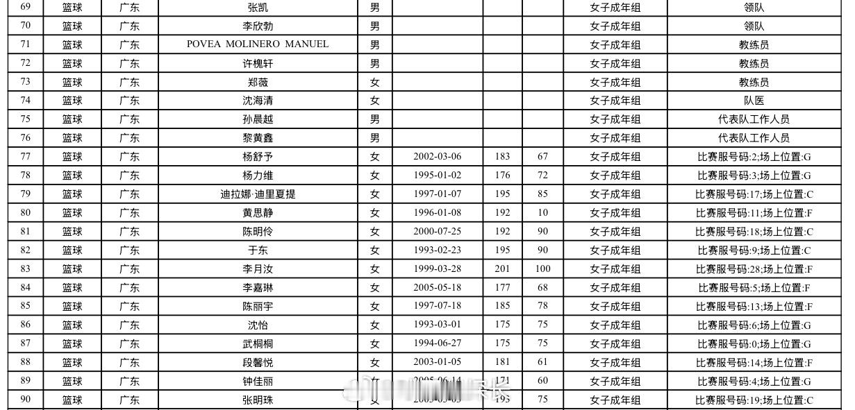 此前篮协官网公示的广东全运女篮名单,包括杨舒予、杨力维、迪拉娜、黄思静、陈明伶、李月汝、武桐桐等队员,郑薇指导是主教练。