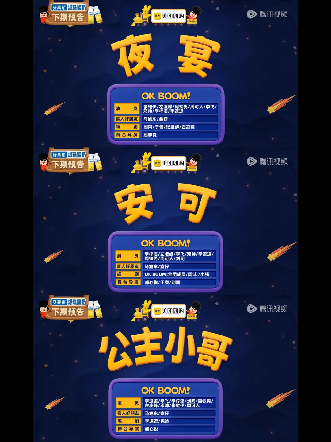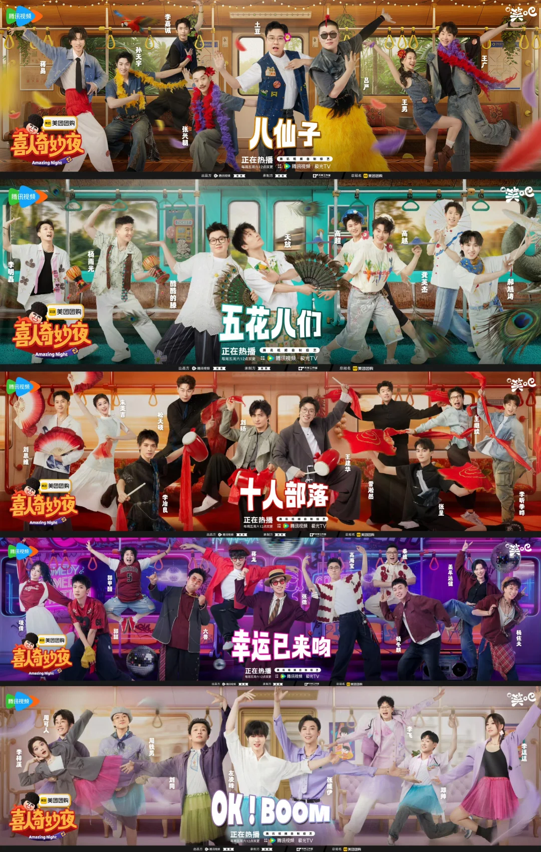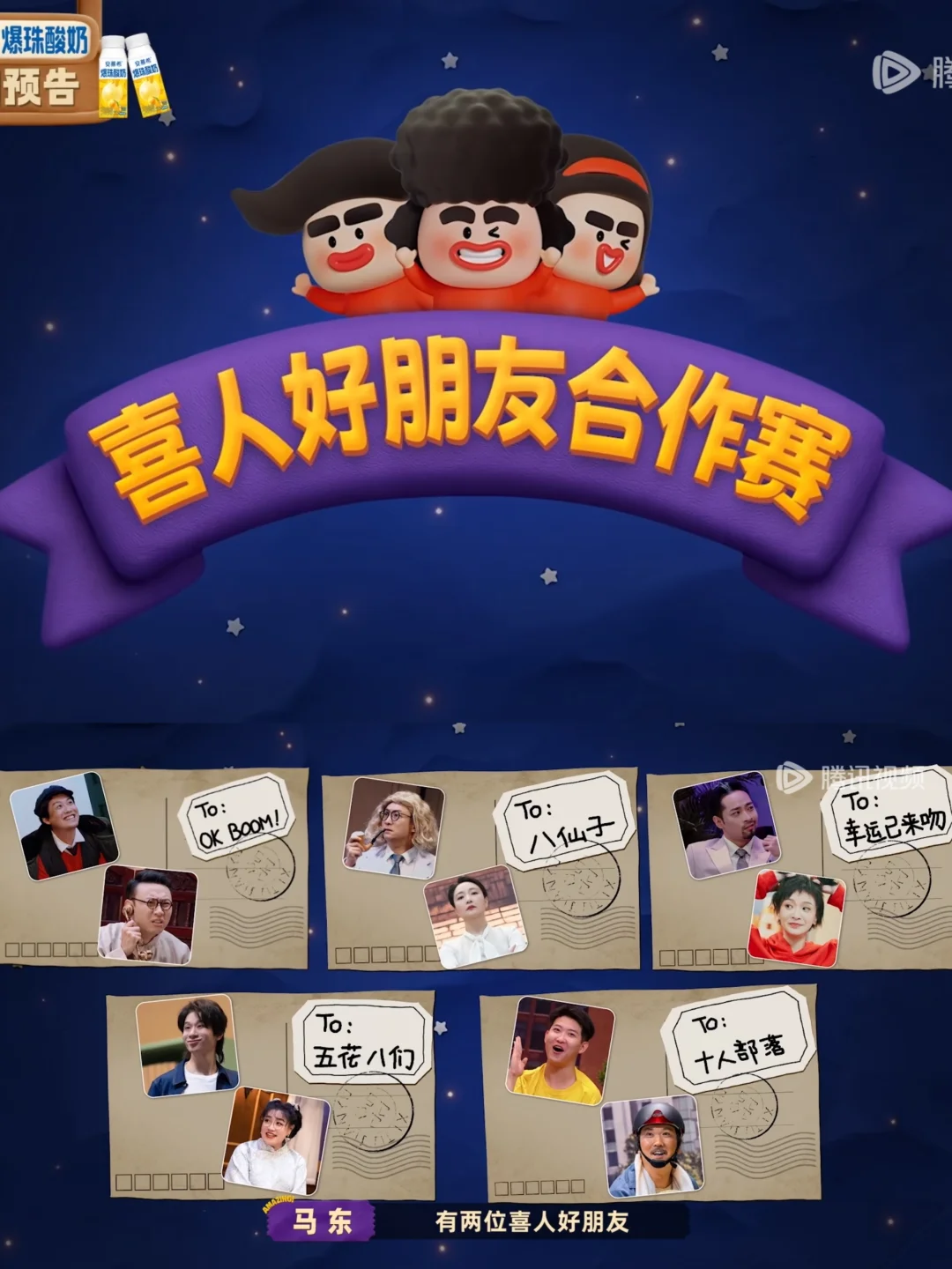 [星R]喜人好朋友合作赛 「八仙子」:宗俊涛、孔令美 「五花八们」:蒋诗萌、叶浏 「十人部落」:闫佩伦、张祐维 「OK!BOOM」:马旭东、鑫仔 「幸运已来吻」:史策、宋木子
