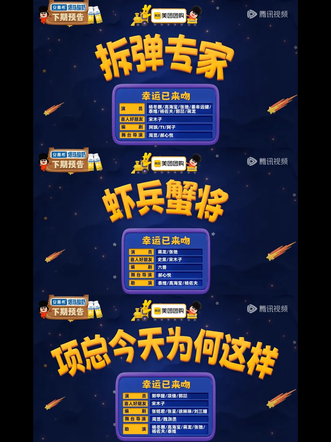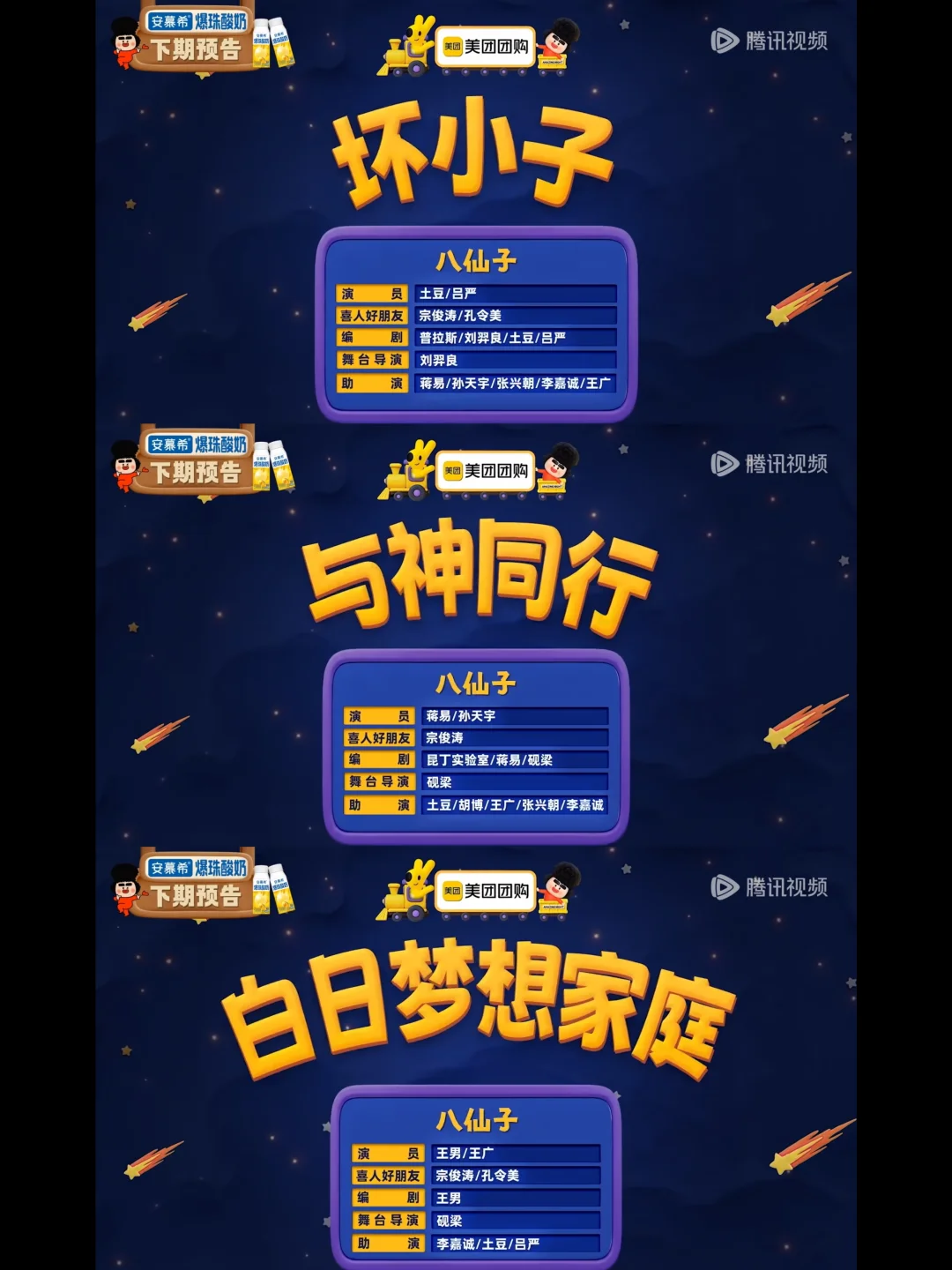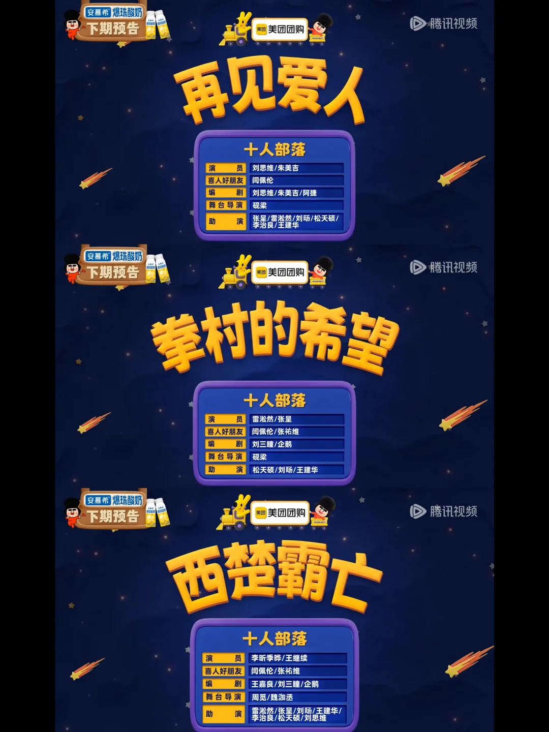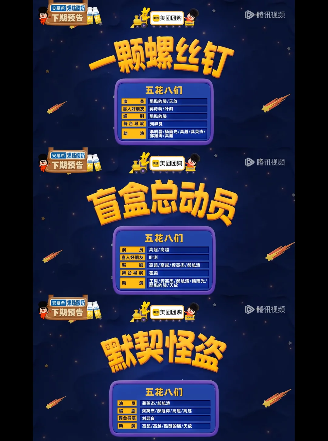 [星R]喜人好朋友合作赛 「八仙子」:宗俊涛、孔令美 「五花八们」:蒋诗萌、叶浏 「十人部落」:闫佩伦、张祐维 「OK!BOOM」:马旭东、鑫仔 「幸运已来吻」:史策、宋木子