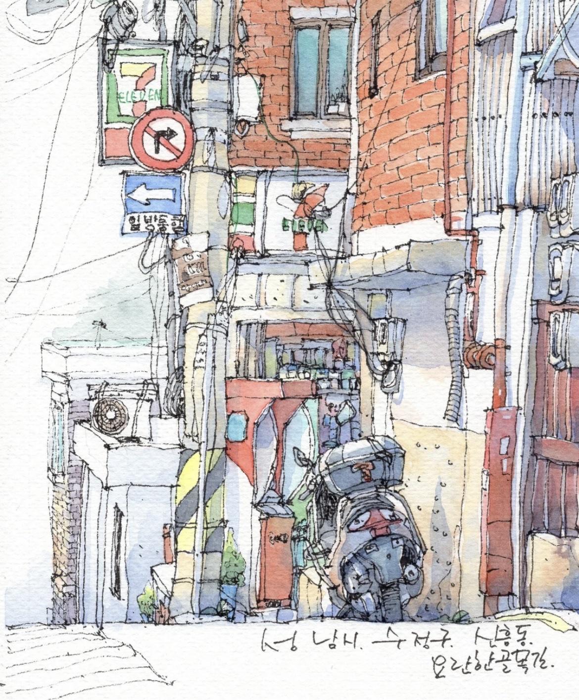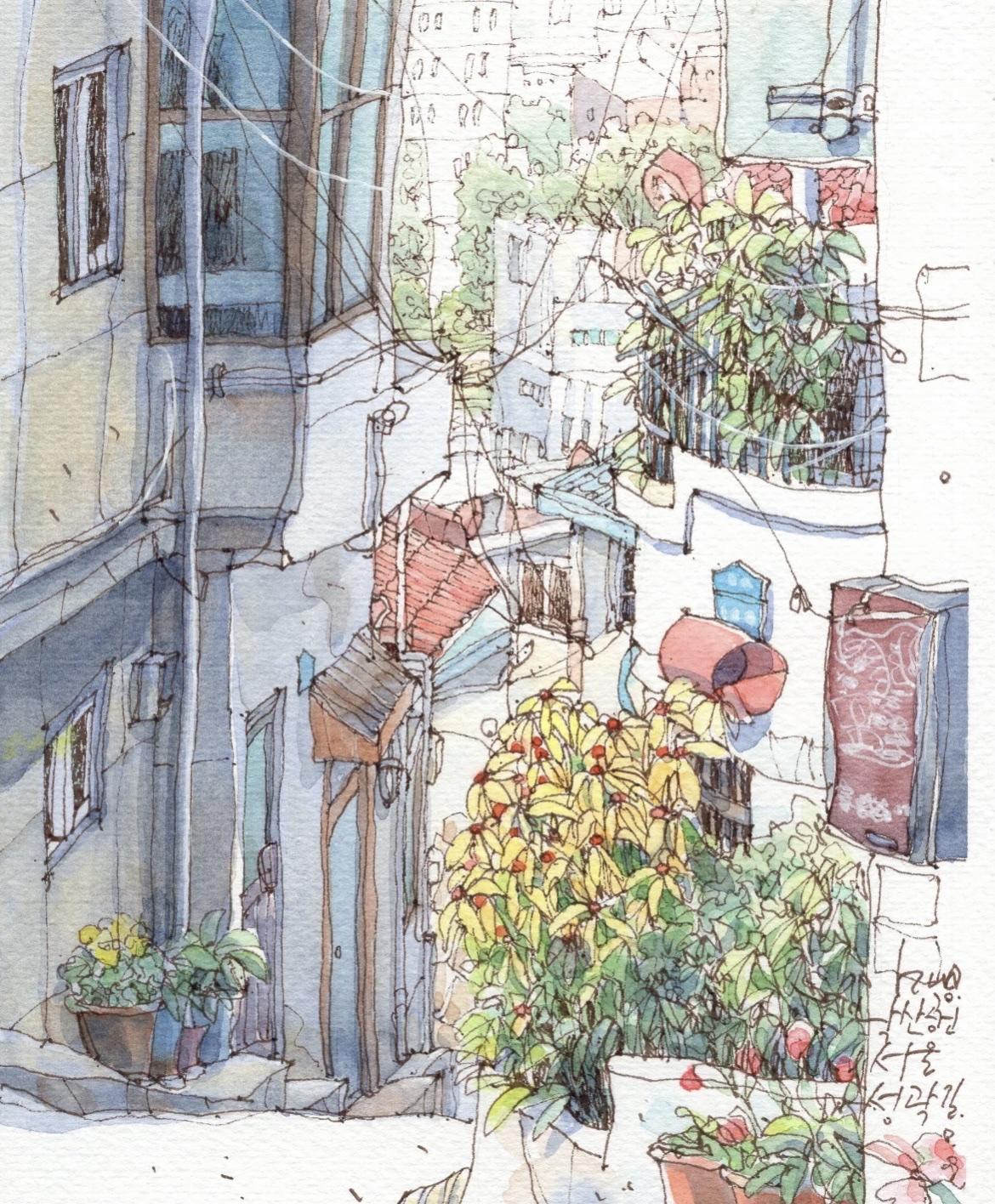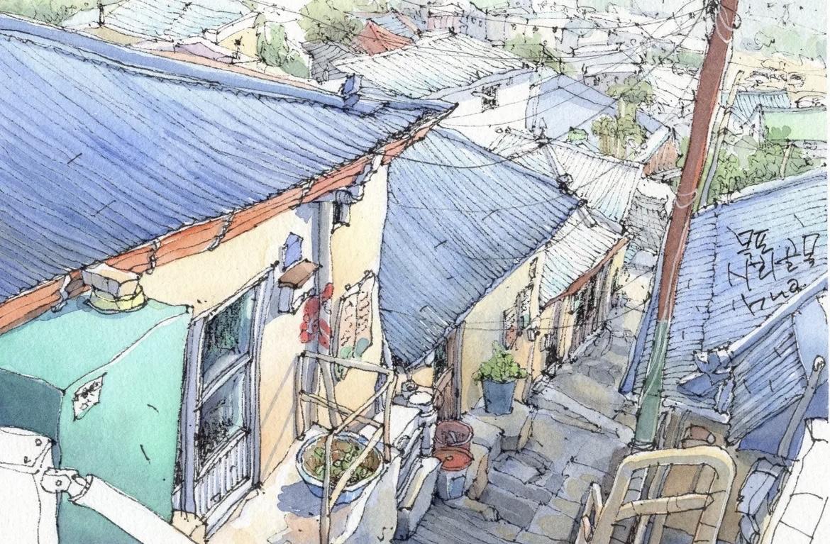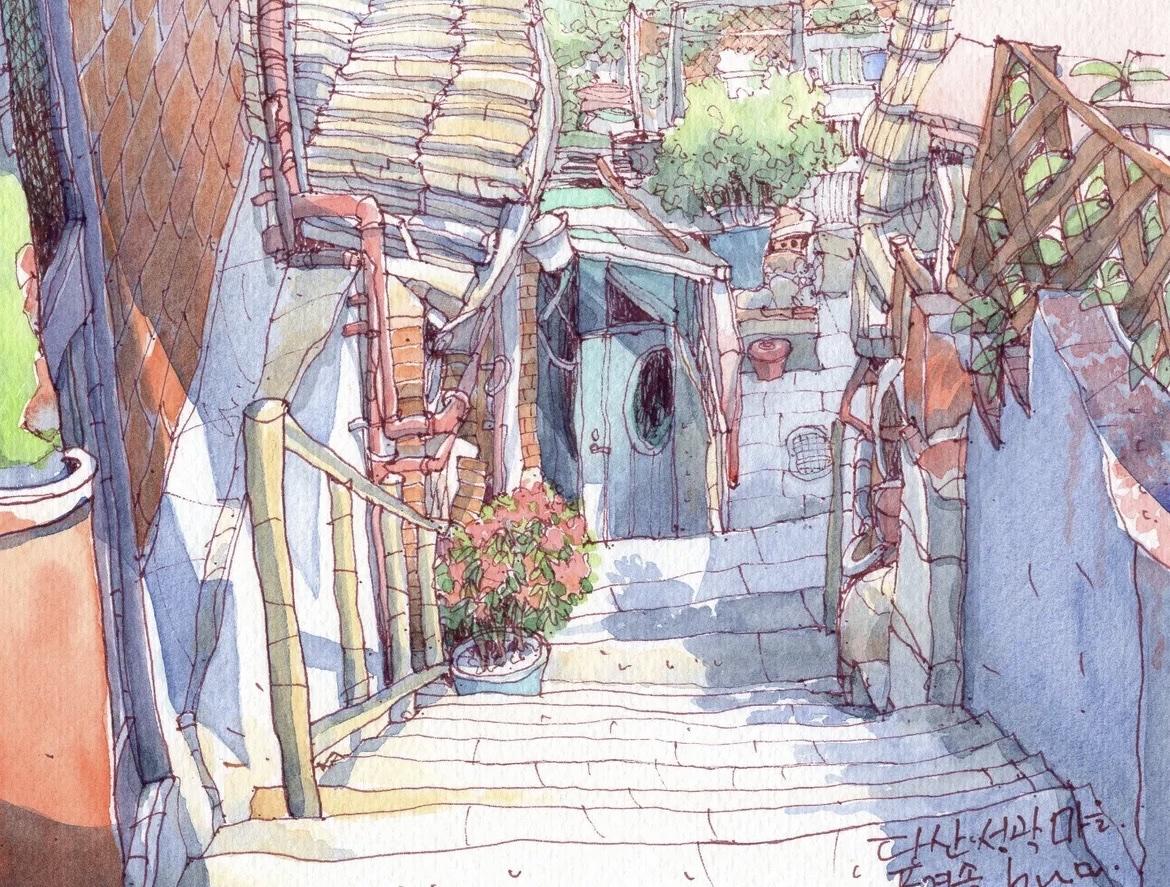 我想,这应该是画画中,最直观的生活语言。 简单的通过线条勾勒, 以水彩淡染画中的每一处细节, 在生活中遇到的任何角落, 平平无奇又用画笔化腐朽为神奇。 可以是饱满的构图, 也可以是大面积的留白, 也适合着多数人学习的画画方法。 In:yeonhua 钢笔淡彩 速写