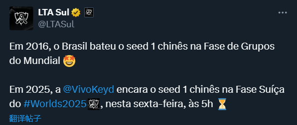 LOL南美官推:2016年巴西队伍曾在小组赛击败LPL一号种子