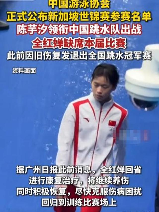 就在最近,中国游泳协会公布了世锦赛的参赛名单,在跳水这一栏很遗憾没有全红婵的名字,