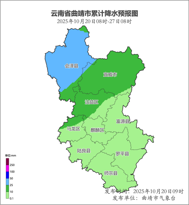 10月20日:会泽阴有小到中雨,其余县(市、区)阴天间多云有小雨;