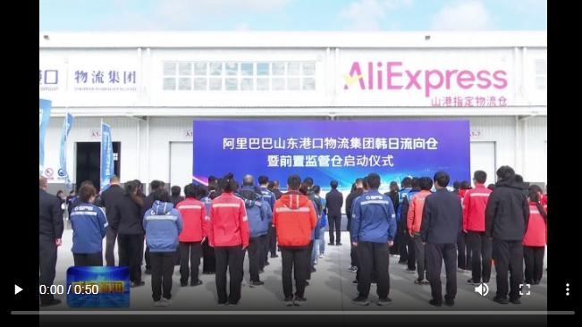 启动仪式后,阿里巴巴集团、山东港口物流集团相关人员实地观摩了阿里巴巴山东港口物流集团韩日流向仓暨前置监管仓。(全媒体新闻中心记者贺宇轩)