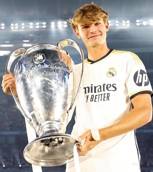 当然,这可不是他在科莫的“昙花一现”了,不然笔者也不会大费周章的去分析他。成年之后就加入了皇马正规青训体系的他,其实早在18、9岁就身披白衣出战了(国王杯)。2023/24赛季也是在欧冠比赛中完成了个人首球的成就,被诸多媒体关注。