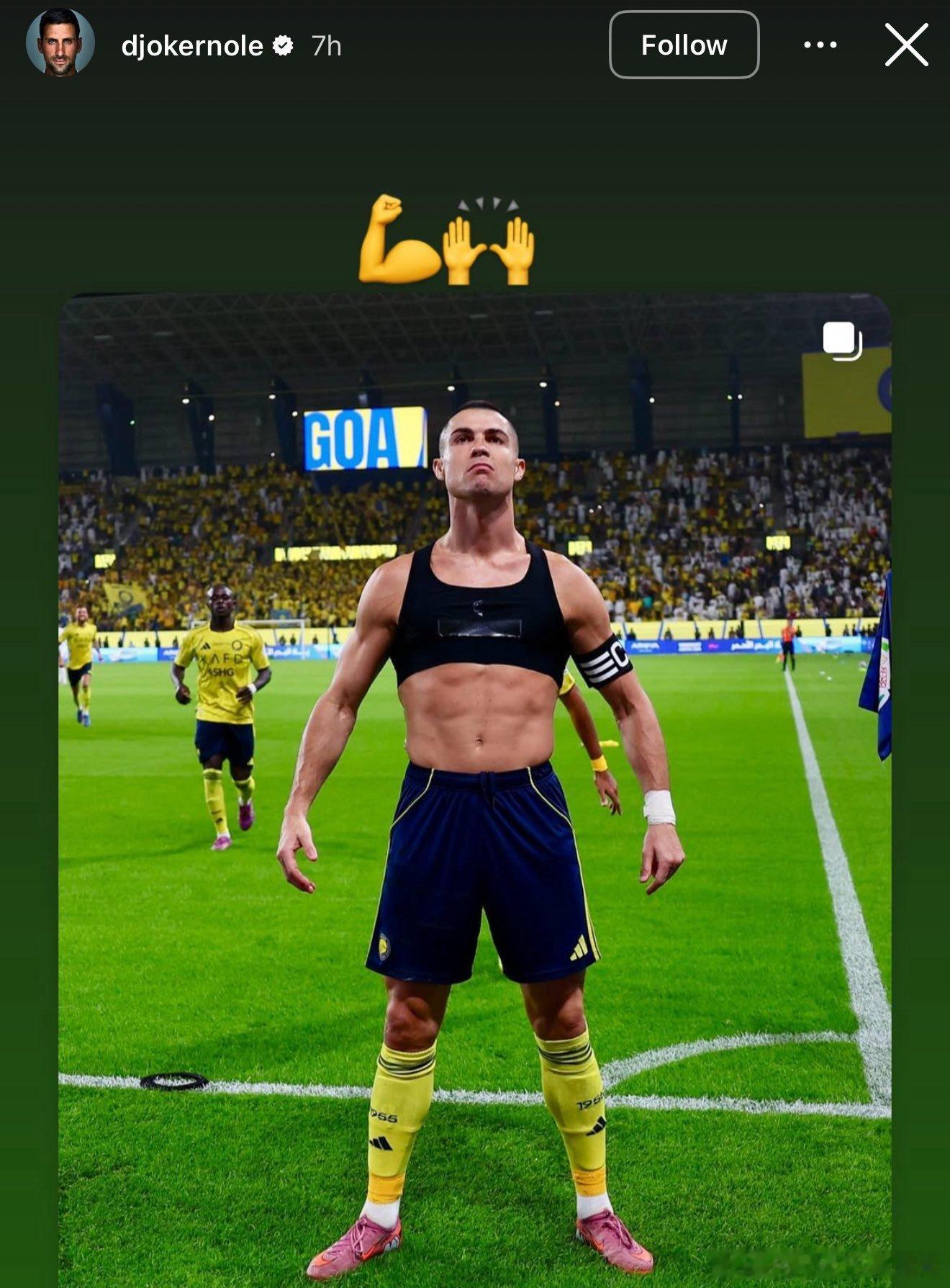 C罗更新了自媒体,晒出了和网坛goat🐐德约科维奇的合影;
