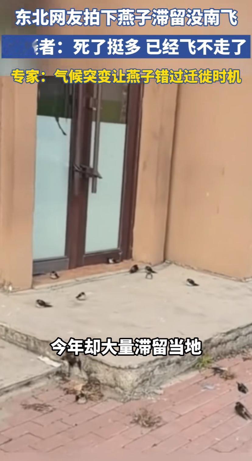 今年天气冷的怪冷的早,连燕子都没反应过来!一东北网友拍下燕子滞留,一些飞不动了,