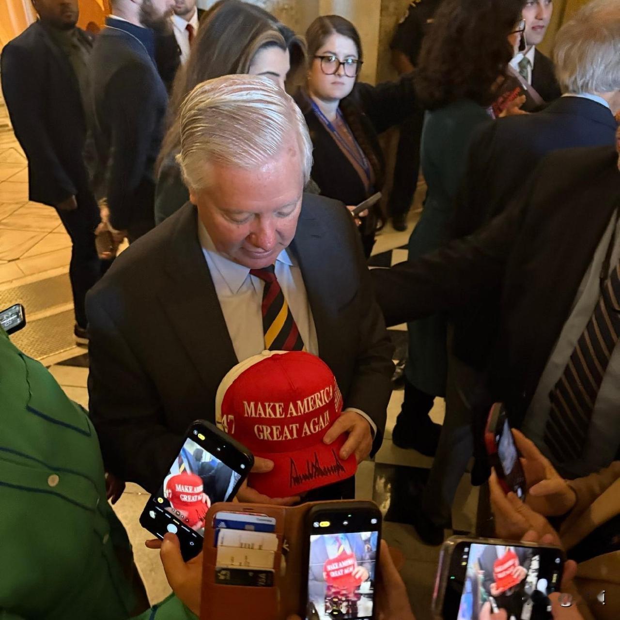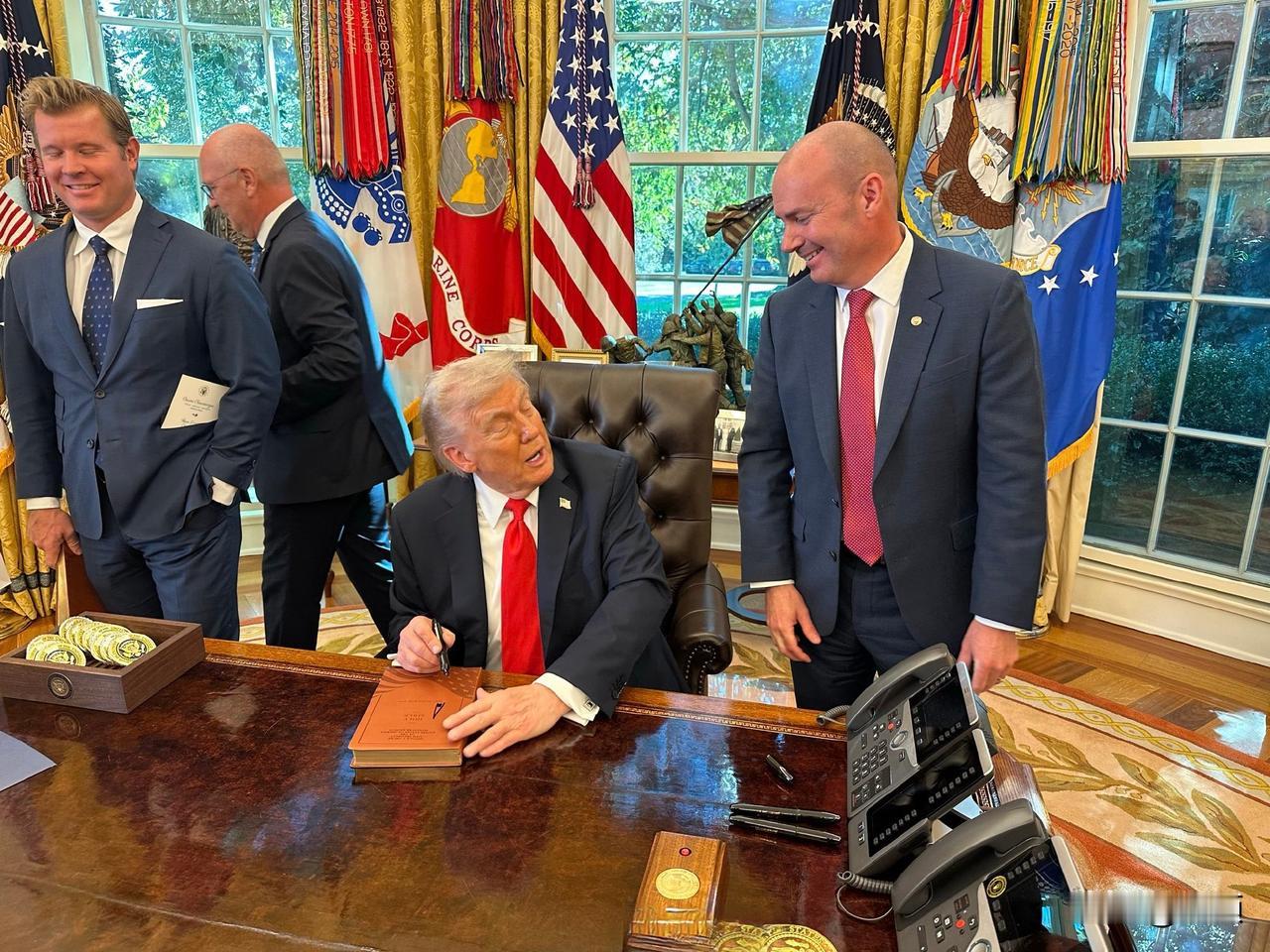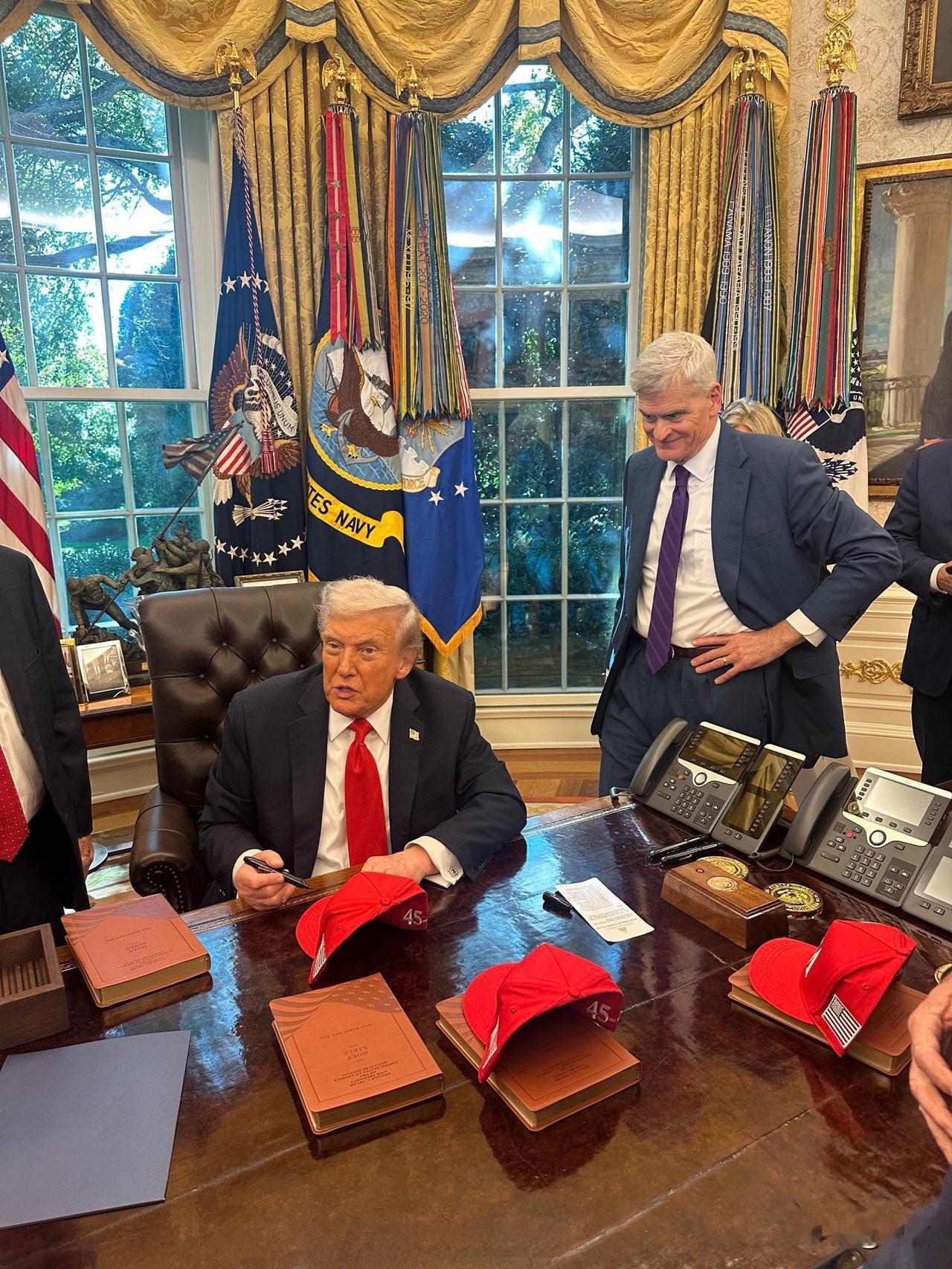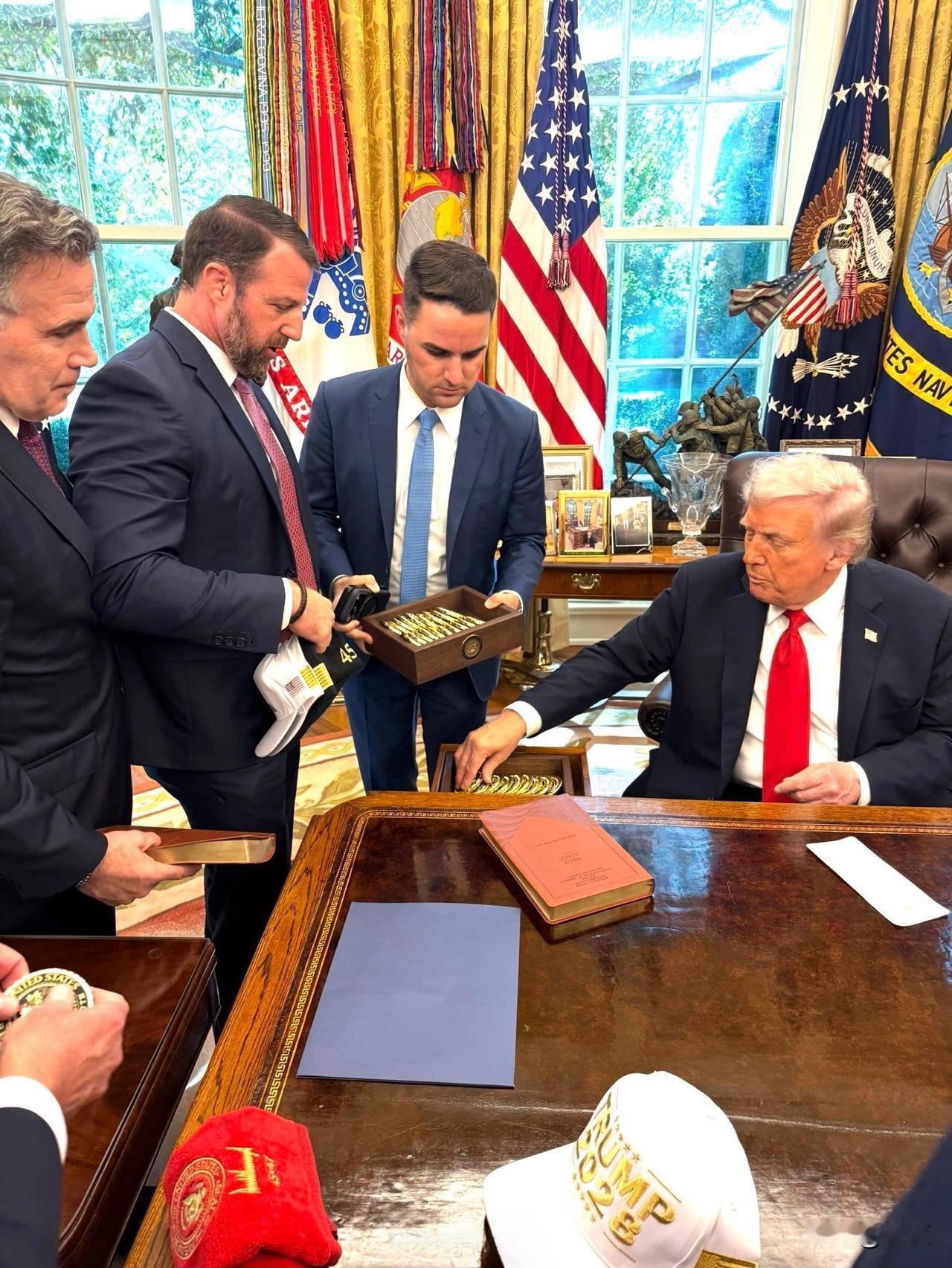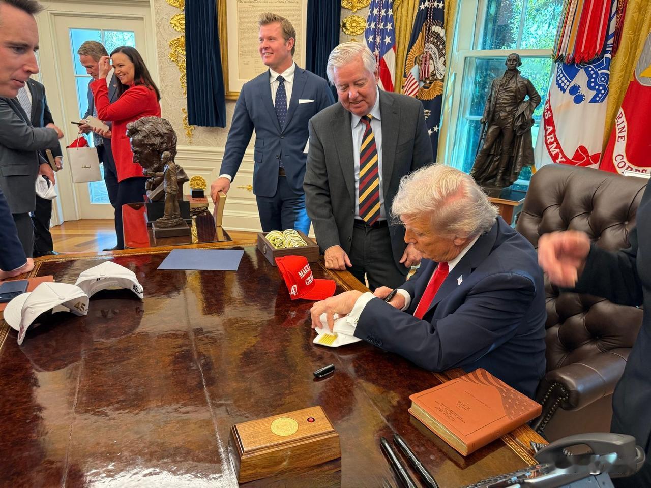 就喜欢这被追捧的感觉……特朗普在白宫举办一场“玫瑰园俱乐部”午聚会,邀请了几乎所有在职的共和党参议员,旨在团结党内所有力量。 椭圆办公室成为大型粉丝见面会现场,到场的共和党参议员排队等着特朗普总统签名 。 被围绕簇拥的感觉简直太好了!