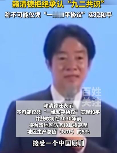 很清楚了,赖清德的回应来了。 针对国民党新主席郑丽文近日提出的“九二共识”“两岸和平”等主张,赖清德在出席台当局“侨务委员会议”开幕式声称,两岸和平不可能靠一纸和平协议,所谓“九二共识、接受一个中国原则,就有办法得到和平”是不可能的事情。 当赖清德打出这番“和平靠实力”的说法时,台湾内部很多人其实都开始质疑,毕竟随着两岸局势越来越紧,岛内大多数人想要的就是稳定和少点折腾,赖清德这一套反而让大家心里没底。 郑丽文则不假思索地反问:赖清德连最基本的两岸常识都没搞明白,到底懂不懂现在台湾人真正关心什么?她直接建议赖清德别再拿这些生硬的说法来搅局,政策上应该好好稳住,别一惊一乍。 这一轮表态,其实更像是一场民意的交锋,赖清德嘴上说要靠“实力”来保证和平,所以不断提高防务预算,连便利店都被他盯上,计划在必要时变成战时医疗点。 但这样做真的能带来稳定吗?更多人看到的,是台湾被一步步推向枪口前,民众普遍感觉,日子反而越来越提心吊胆,和平变成了口号,生活压力却跟着政策一起上升。 社会思考难免就会想到过去,马英九执政的八年里,正是因为有了“九二共识”,两岸开始以常态化的沟通方式打交道,那段时间,台湾的水果、观光、航空,处处都活跃起来,对普通人来说,和平不是文件上几句话,而是真实的收入和生活红利。 可对比现在,岛内老百姓问得最多的就是,为什么如今活生生的机会没了,两岸反而越来越生分? 其实这些年民进党一边喊着和平,转头又在各类场合上推“去中国化”那一套,现实里说和平,实际却在切割历史文化,还时不时搞些挑衅动作。 久而久之,不光台湾民众觉得别扭,大陆的官方也早就看穿了赖清德那点心思,明确说他才是挑起紧张的那个人,习惯做表面文章的套路,经不起推敲,岛内主流民意才会越来越反感。 归根结底台湾的只有一个选择,那就是统一,摆在面前的有两条路:一条是承认“九二共识”的最大公约数,把和平红利重新带回来。 另一条则是赖清德这样,用“台独”去和大陆硬碰,结果只会越走越远,让整个台湾陷进自我设限的死胡同,而脱离“九二共识”,谈和平,不过就是原地打转。