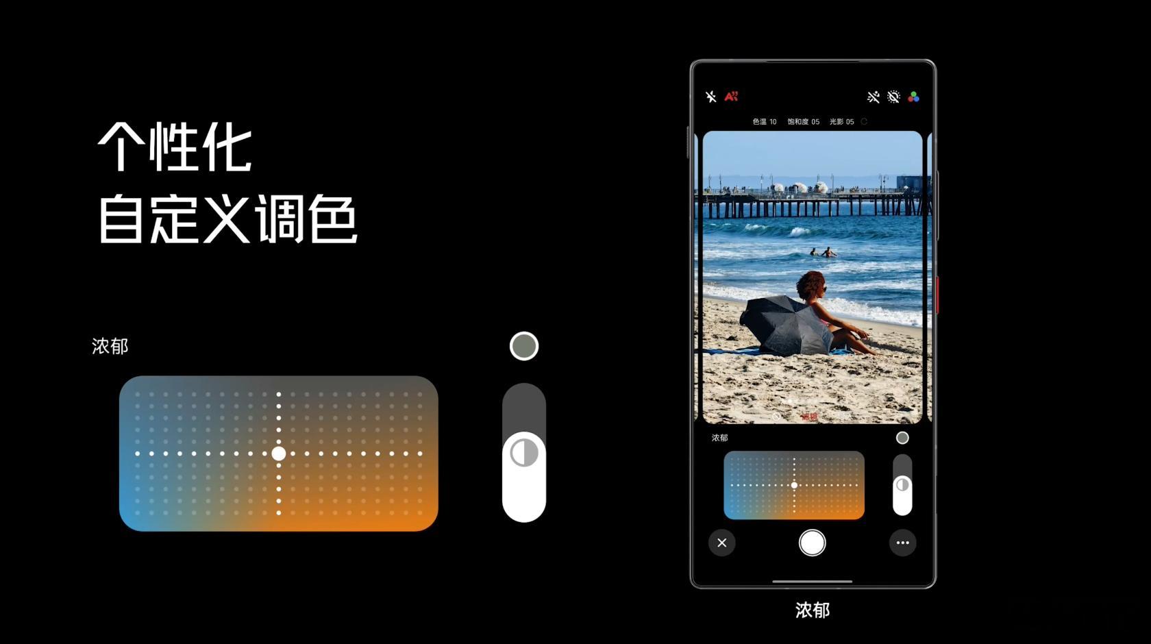 这一代的相机支持AI辅拍,帮助用户构图。提供各种相机风格的影调,胶片感随手就拍了,相机里也给到了个性化调色盘。