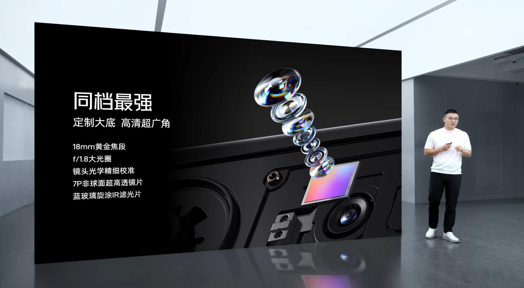 给到了同级最强大底超广角,18mm焦段,还有一颗支持长焦微距的潜望长焦,组成三主摄。