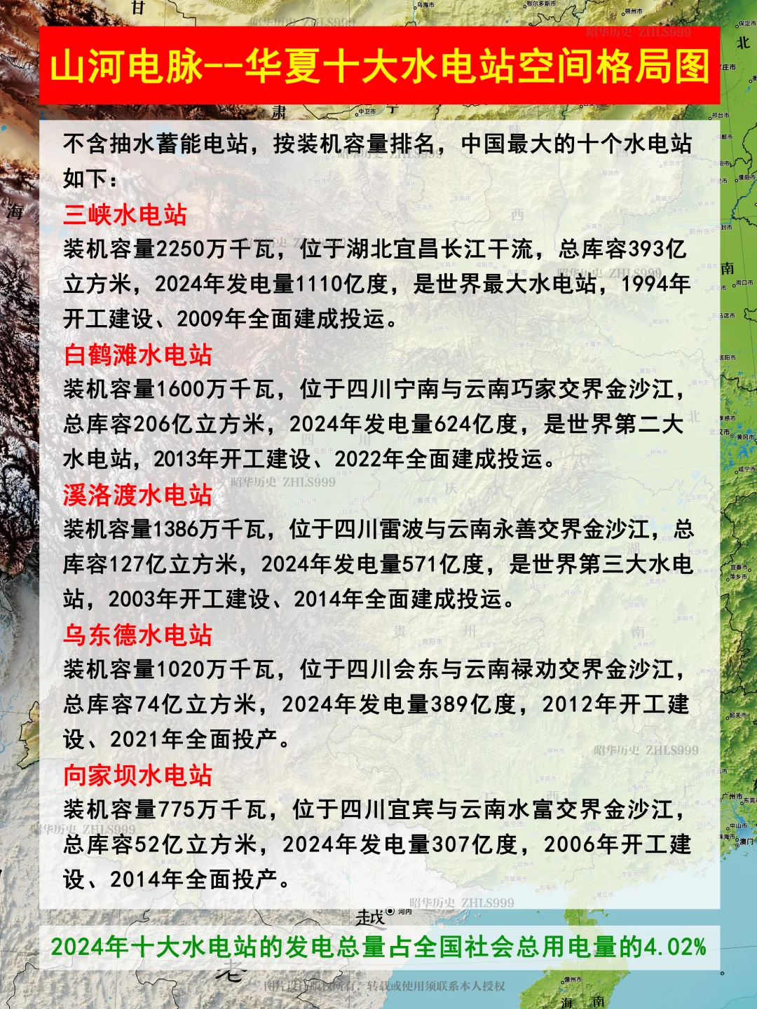 时,十大水电站的发电总量占全国社会总用电量的 4.02%。