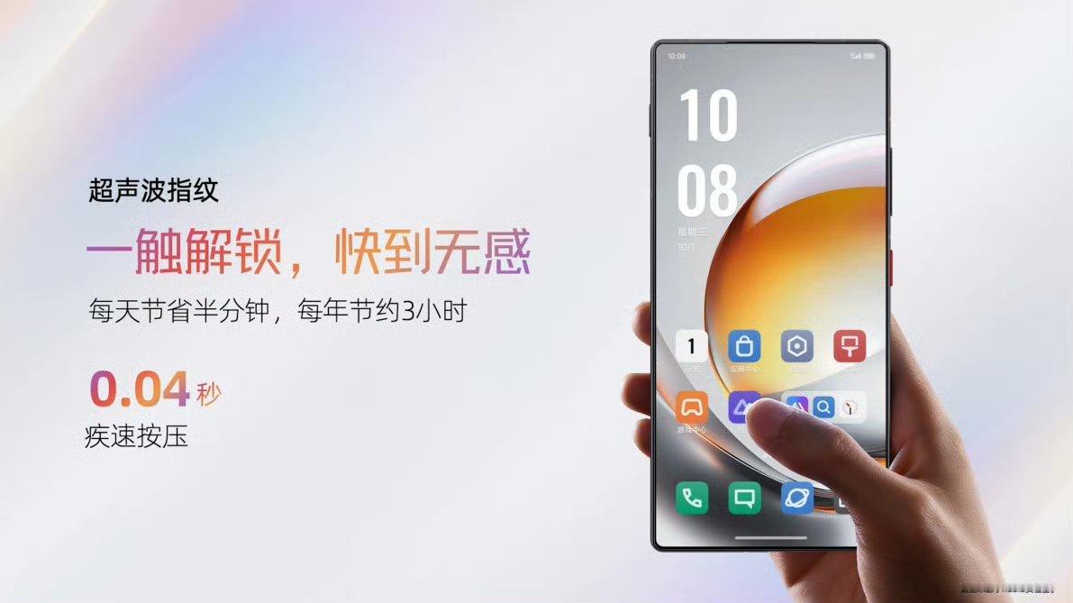 努比亚Z80Ultra搭载3D超声波指纹,可实现0.04秒超短按压的无感解锁体验,对比上一代解锁速度提升了近90%。应用打开关闭、解锁、圈搜、下拉状态栏等数十个高频场景,让每个日常操作纵享丝滑。