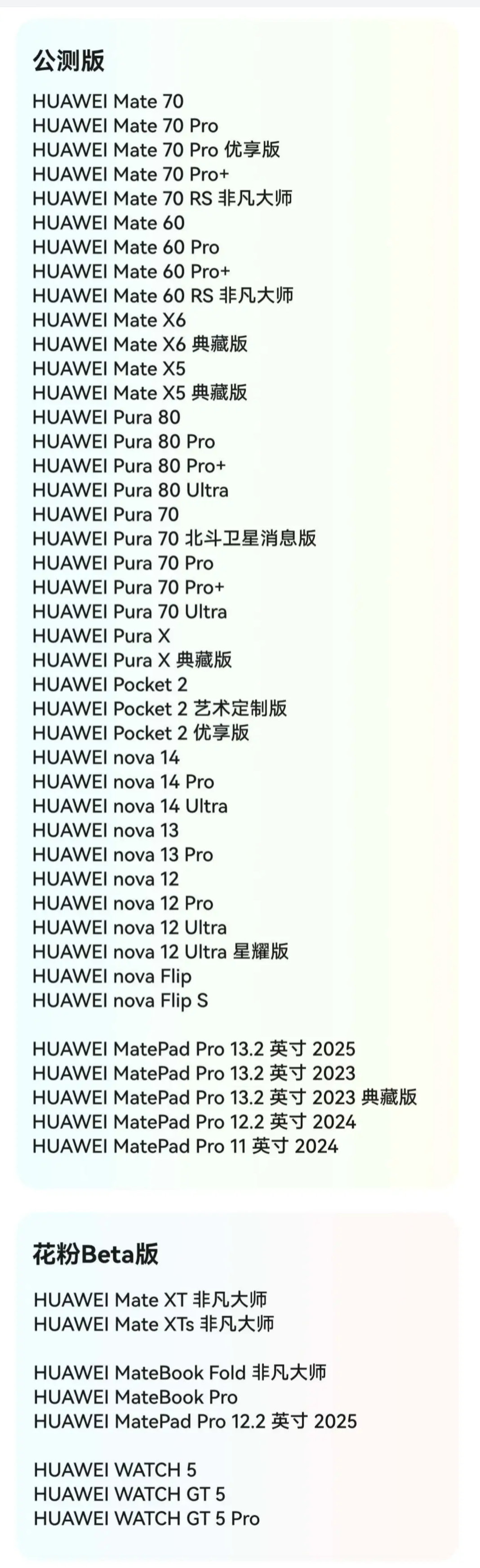 华为鸿蒙 HarmonyOS 6 公测版手机 / 平板适配机型公布