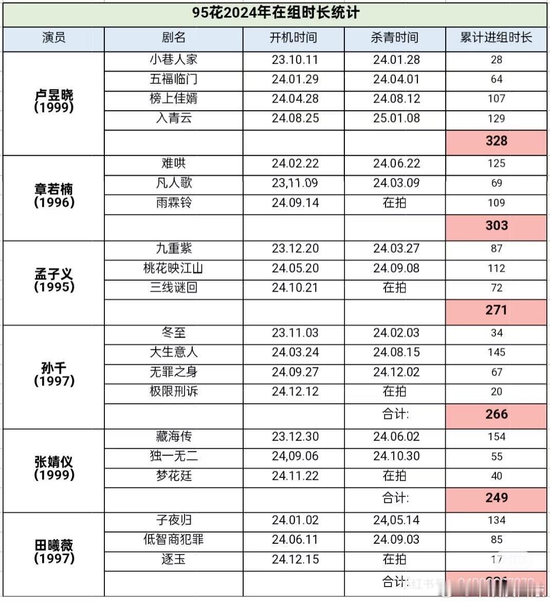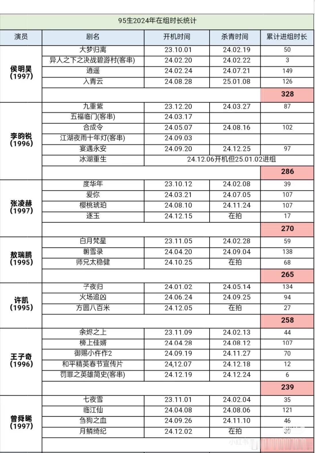 刚刚去看了一下24年在组时长的统计侯明昊和卢昱晓分别位于95生、95花的top1