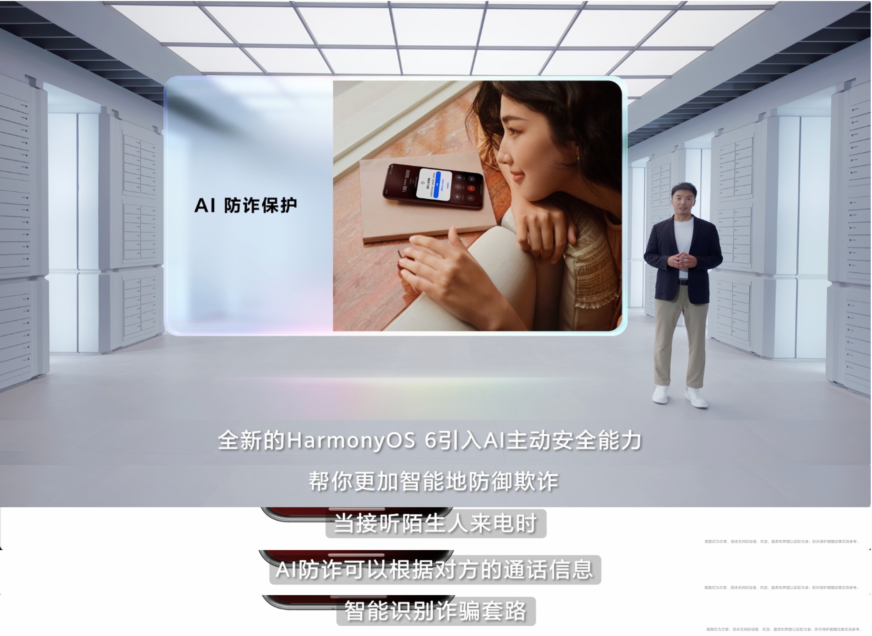 鸿蒙6帮父母挂断诈骗电话诈骗套路都在不断升级,我自己都很难分辨,更别说家里老人小孩了。这次鸿蒙6隐私安全再升级,推出亲情防诈,家人有被诈骗风险,会实时提醒用户远程挂断电话,并标记号码,守护全家隐私安全。还有全新的AI防诈,识别通话信息,智能判断诈骗套路,及时给出提醒。