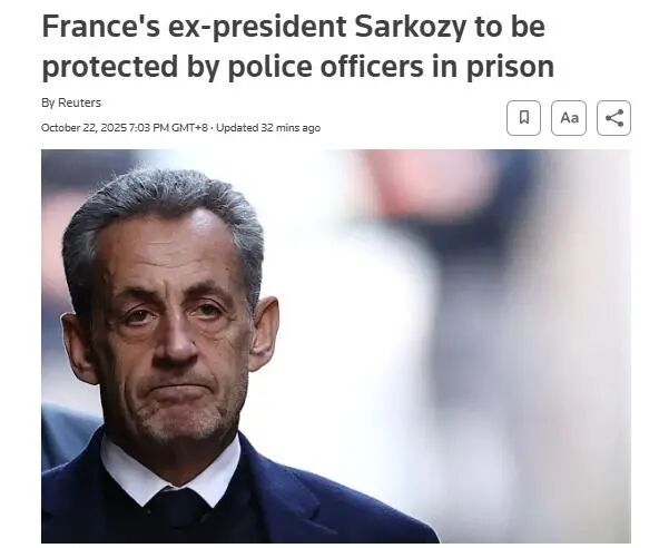 据中国新闻网援引路透社报道,当地时间22日,法国内政部长努内兹表示,正在服刑的前总统尼古拉·萨科齐在押期间,将有两名警员常驻相邻囚室实施保护,确保其人身安全不受威胁。