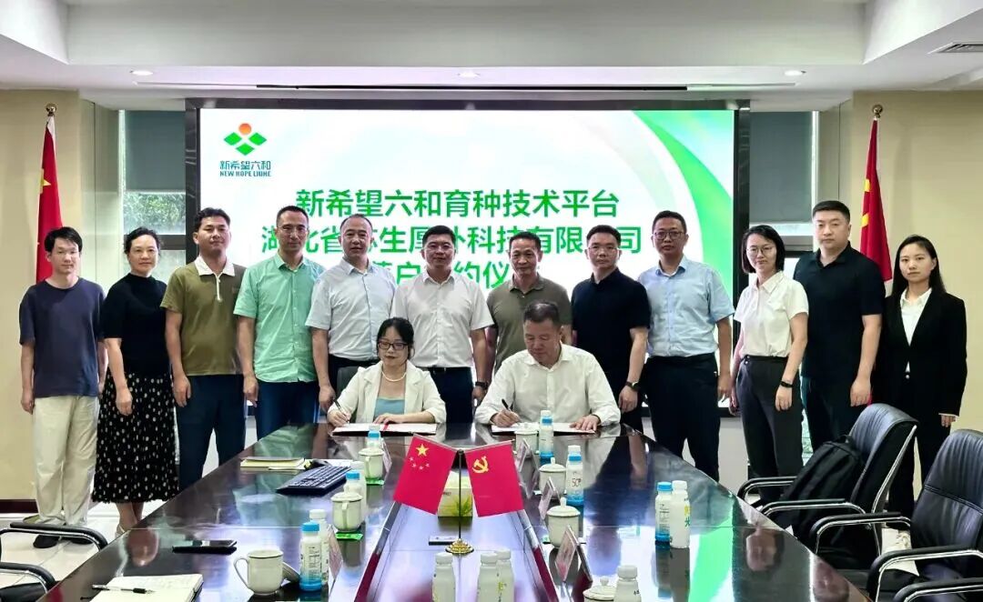 近日,新希望六和育种技术中心项目在成都举行签约仪式。在武汉东湖高新区党工委副书记、光谷生物城党委书记王晓林与新希望六和股份有限公司副总裁李爽见证下,新希望六和猪产业育种技术总监经璐博士、武汉高科农业集团副总经理王洪进代表双方签约,标志着该育种技术中心正式落户武汉农创中心核心区高农生物园。