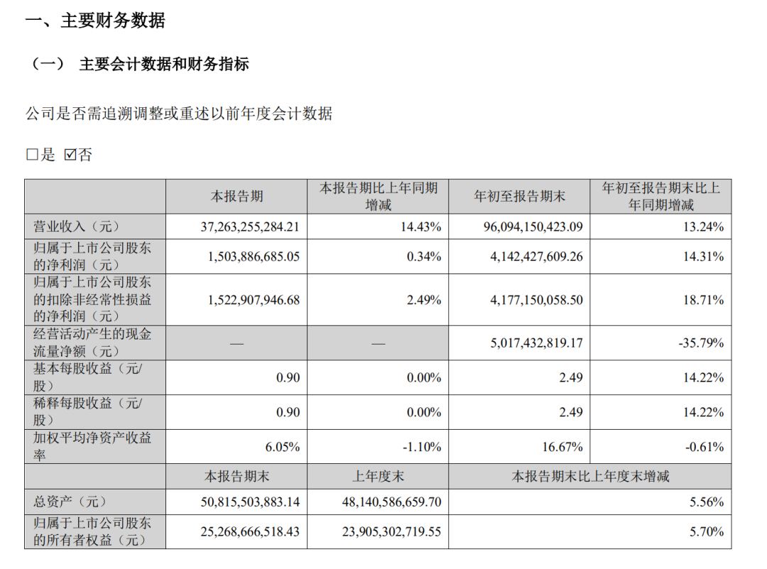 海大集团10月17日披露2025年三季度报告,公司第三季度实现营业收入372.63亿元,同比增长14.43%;归母净利润15.04亿元,同比增长0.34%。前三季度归母净利润41.42亿元,同比增长14.31%。