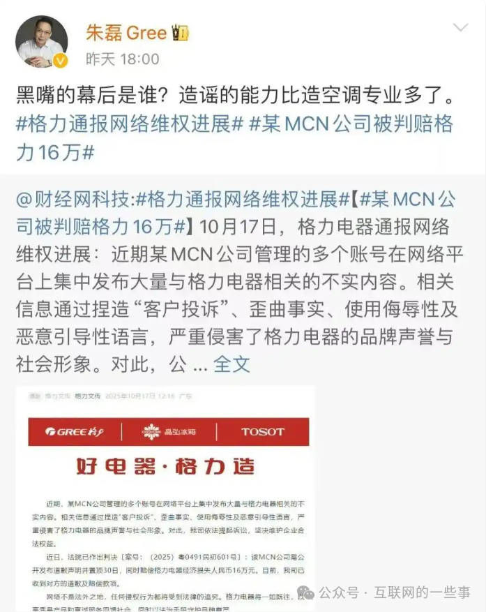 近日,格力电器市场总监朱磊在微博上多次发声,直指网络上持续抹黑格力的“幕后黑手”,矛头直指被他称为“不群”的势力。